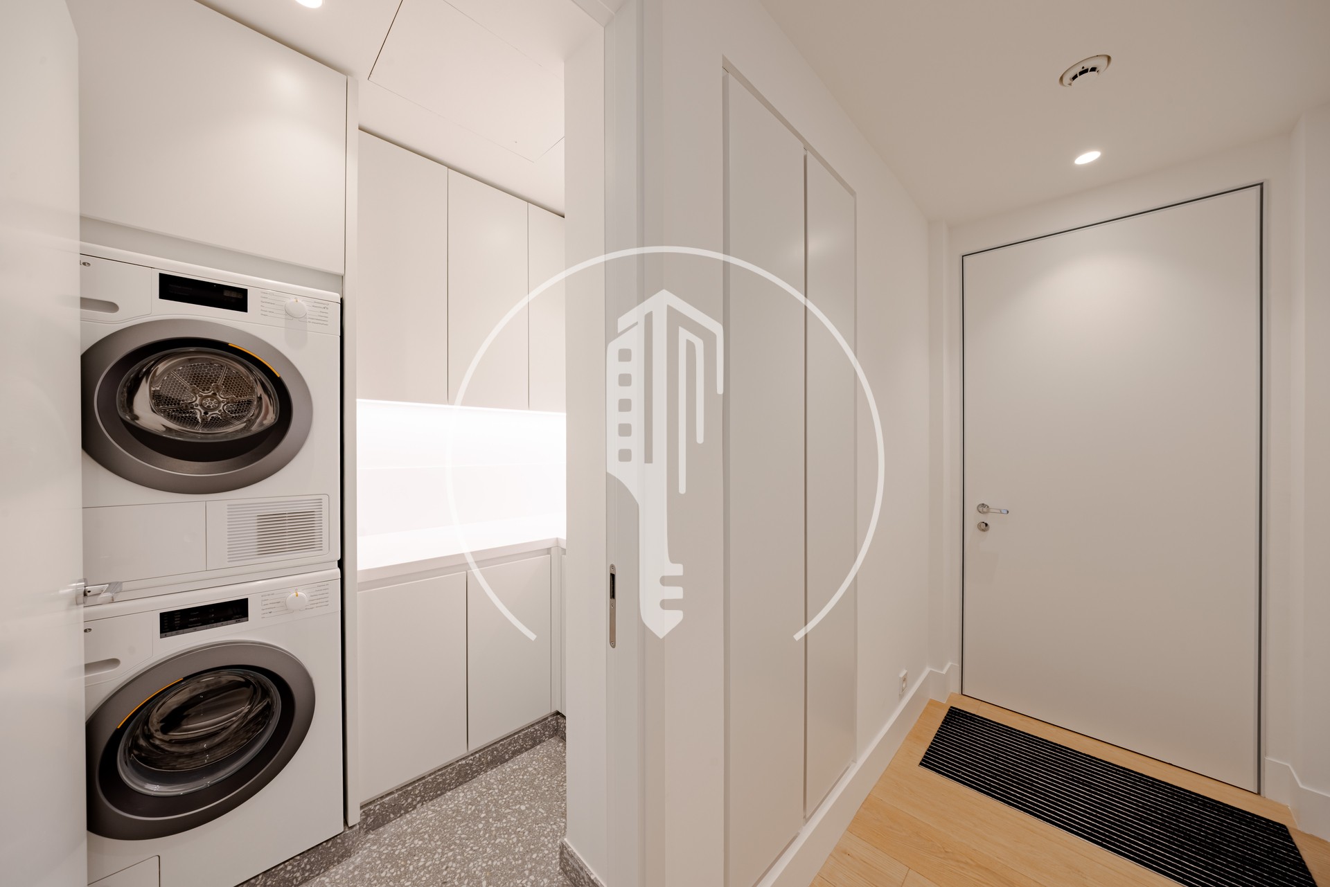 The apartment also includes an independent kitchen, a laundry room, guest toilets and toilets for the staff.