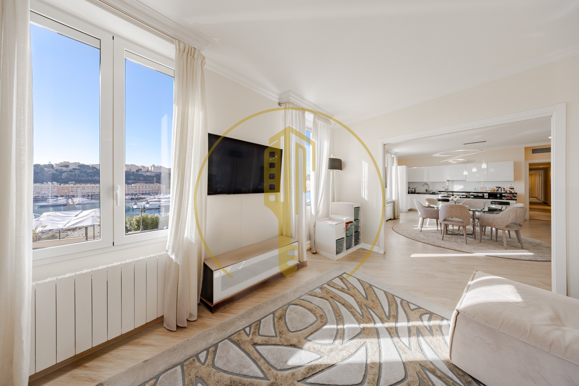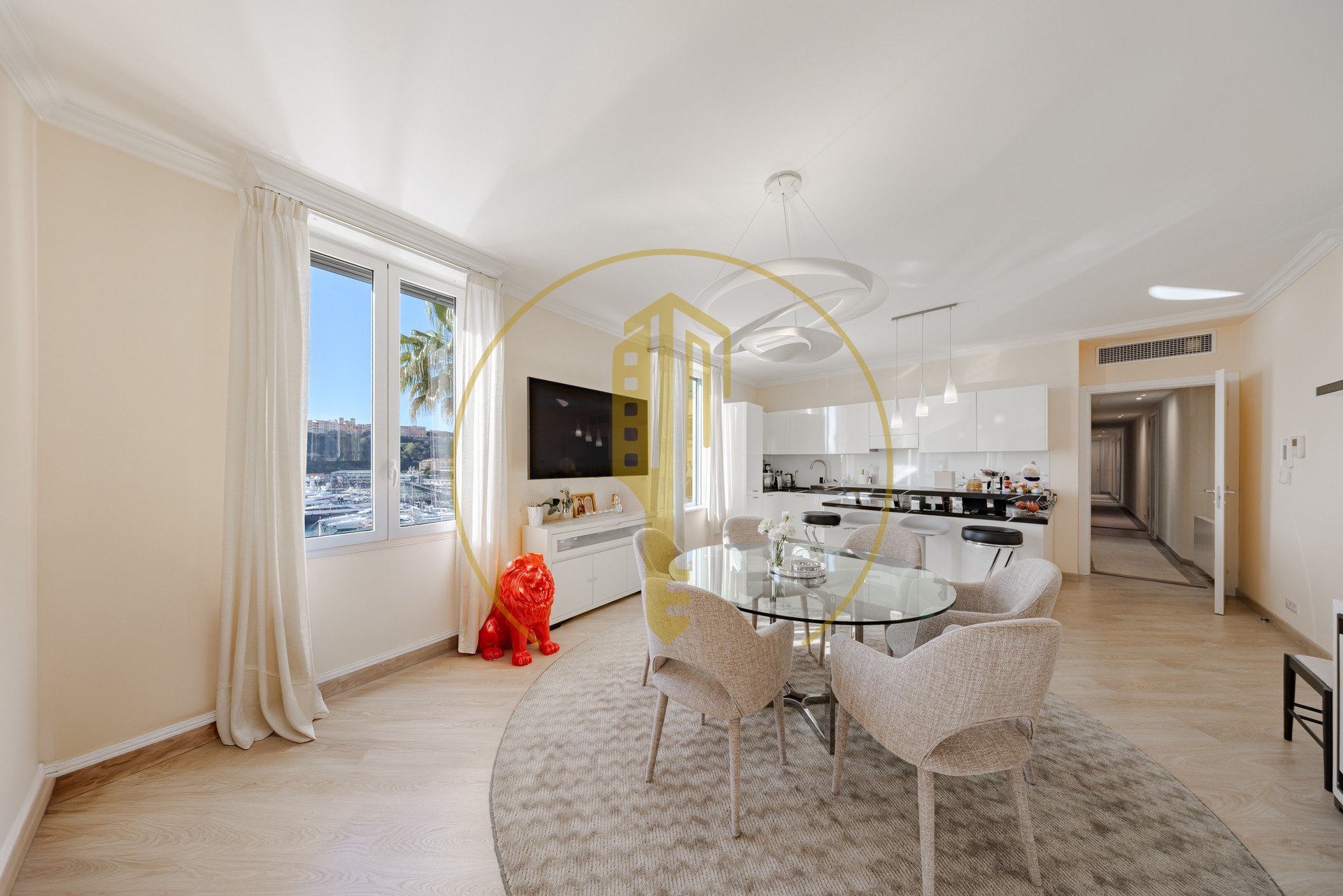 In the heart of Monte-Carlo, a stone's throw from the Carré d'Or, this superb 6-room apartment of 185 m² under the law 887 offers a breathtaking view of Port Hercule.
