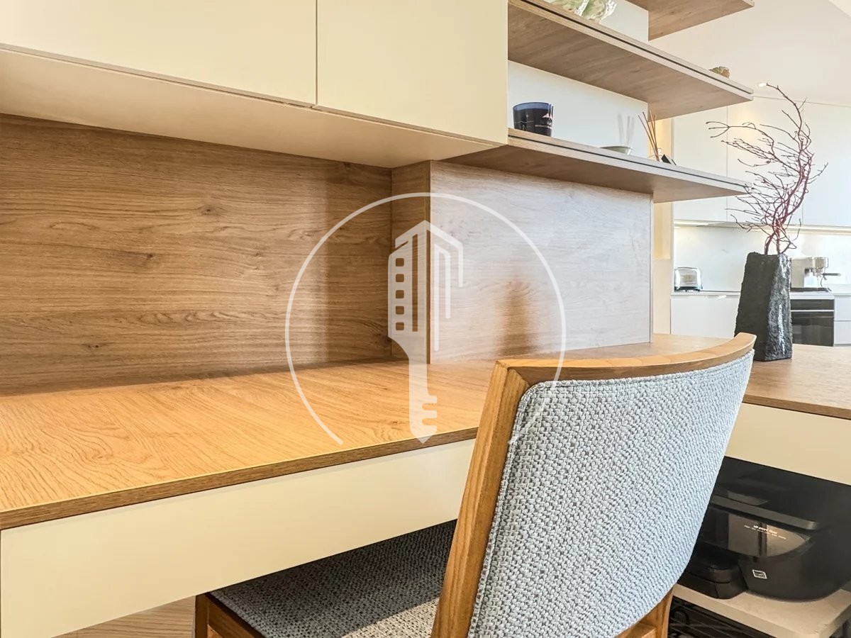 The apartment impresses with its stylish and harmonious interior concept. Warm beige tones combined with light wooden parquet flooring create an elegant yet welcoming atmosphere. The layout has been carefully designed to maximize both the spacious feeling of the rooms and the available storage options. With its east-facing orientation, the apartment also benefits from beautiful morning sunlight.