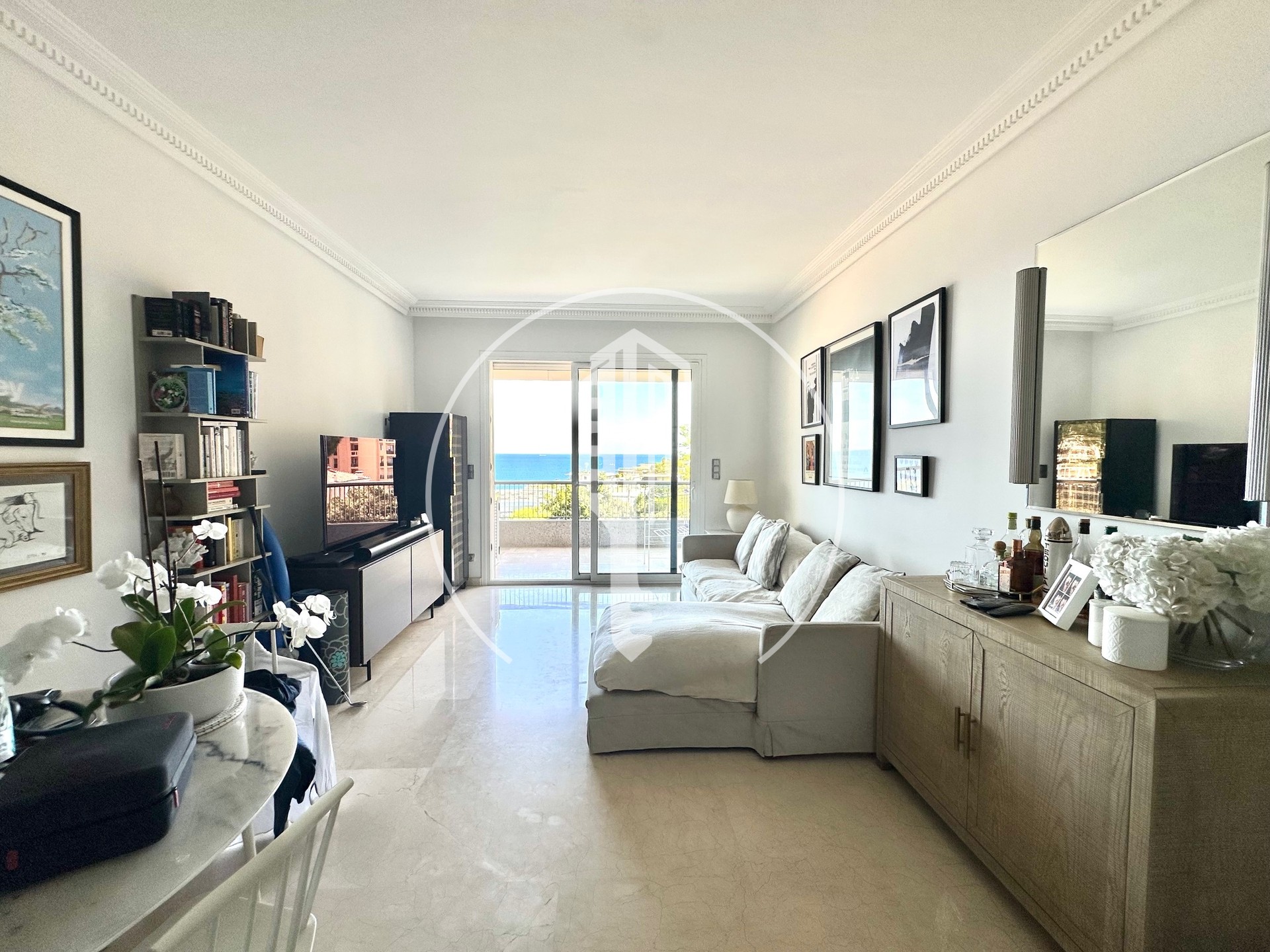 Pretty renovated 3 room apartment in a very good location a few steps from the Casino with a beautiful terrace and sea view