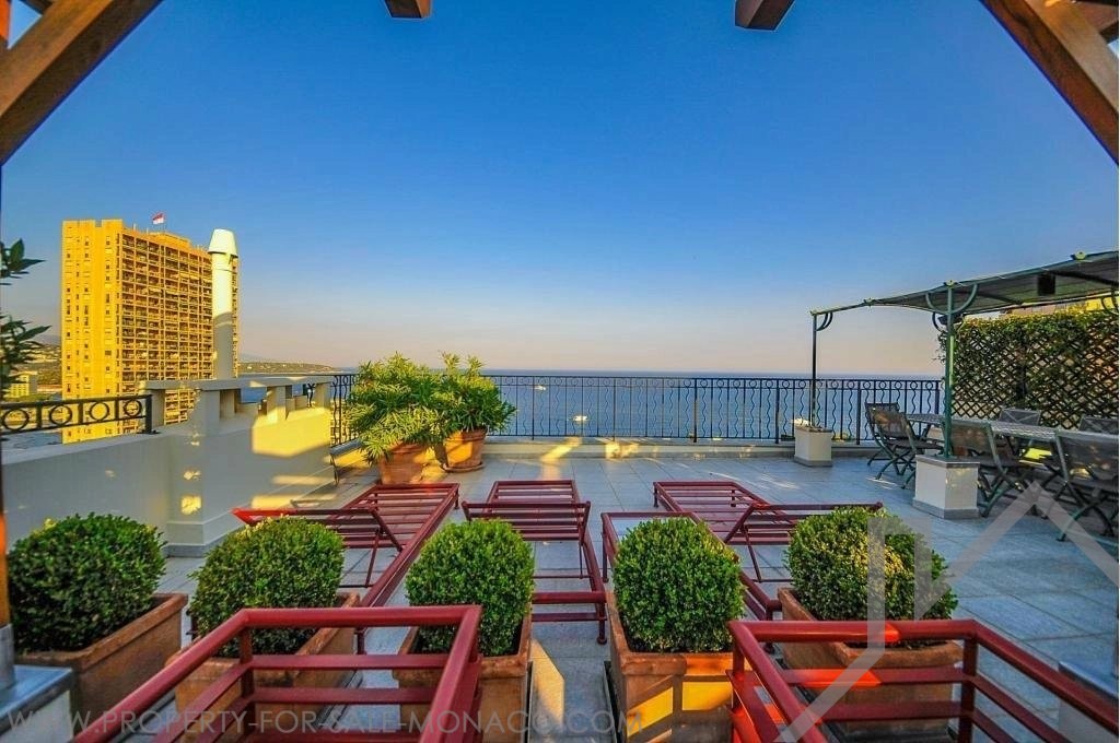 Exceptional, Central, in an old and charming building, very nice penthouse on 2 levels with a living area of 145sqm and 150sqm of terraces. It enjoys of a beautiful sea view and it is composed of :