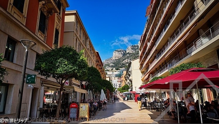 Vue sur la rue Piétonne Princesse Caroline et le port.