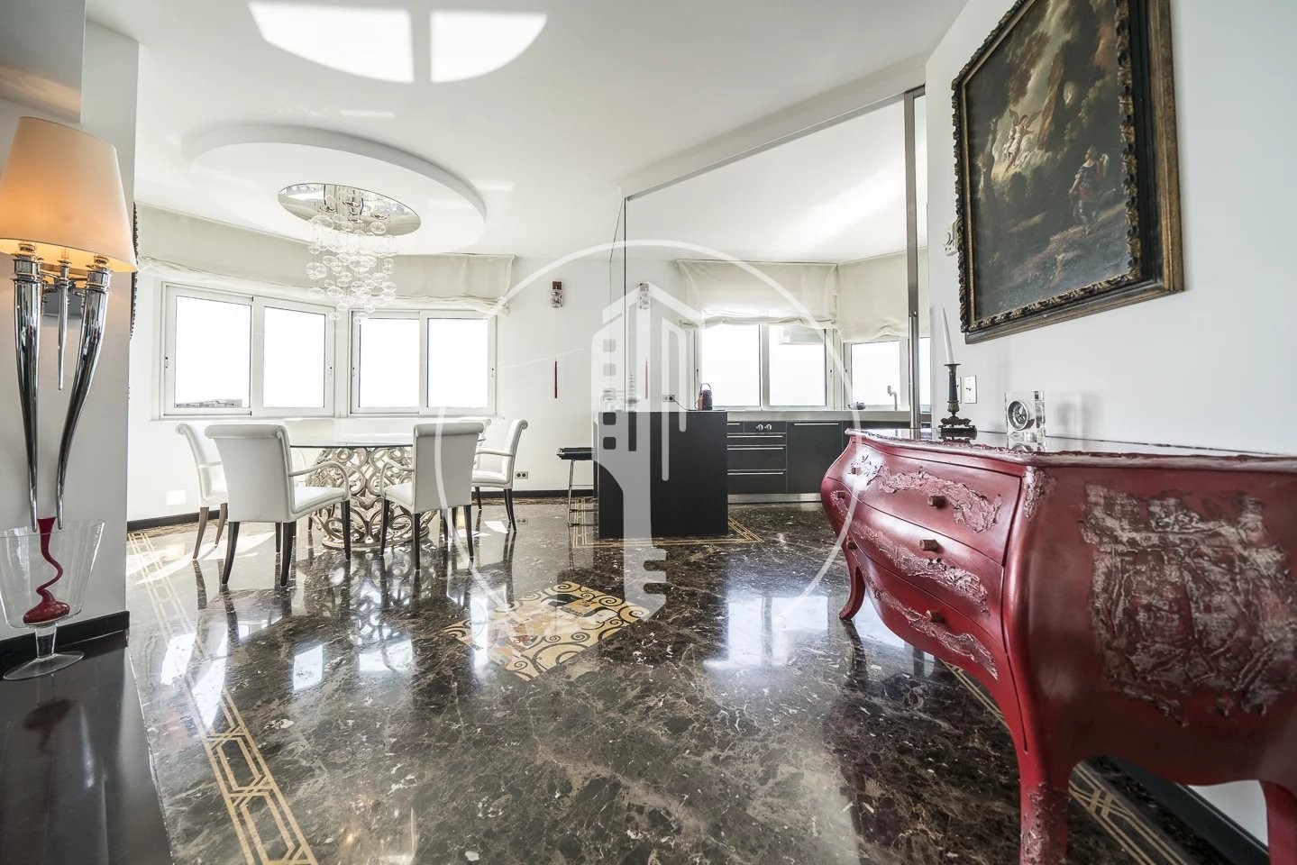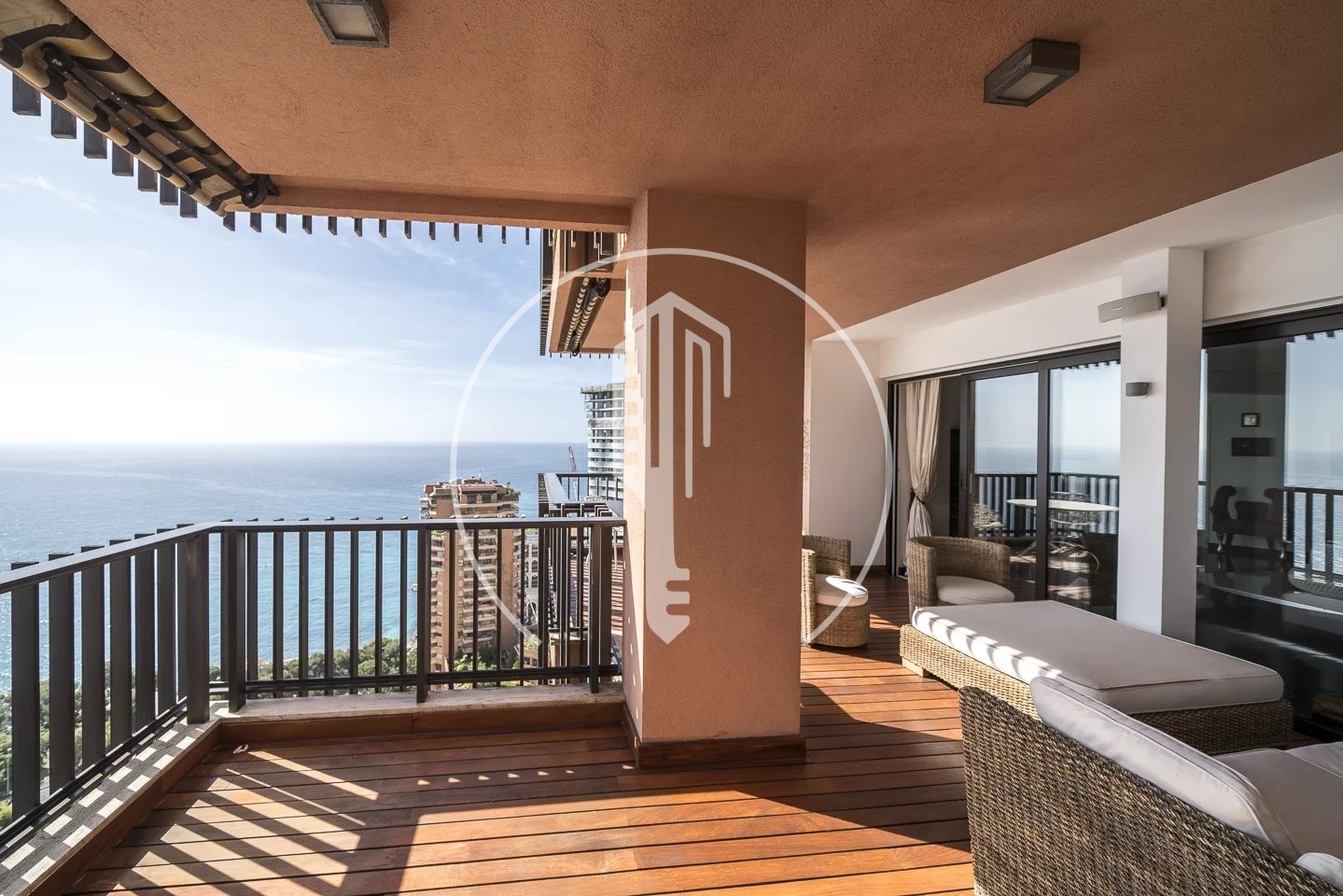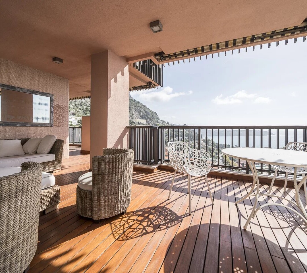 La Rousse, Saint Roman, in a residence of high standing with concierge H24 and swimming pool, very beautiful 5 room-flat with a living area of about 228 sqm and  48 sqm of terraces. Located on the 15th floor and exposed east, it enjoys panoramic sea views overlooking the Country Club and Monte Carlo Beach. It has been renovated with beautiful materials and decorated in a design way. Close to all amenities.
