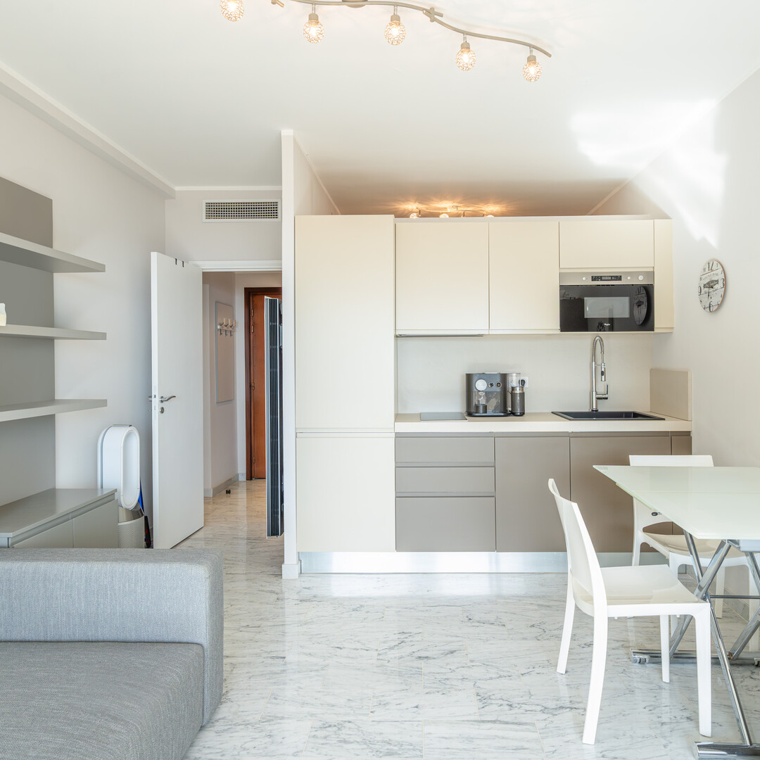 With a living area of 32 m² and 10 m² of terrace. Located on a high floor, this nice studio has been completely renovated. It is facing south and enjoys a beautiful sea view.