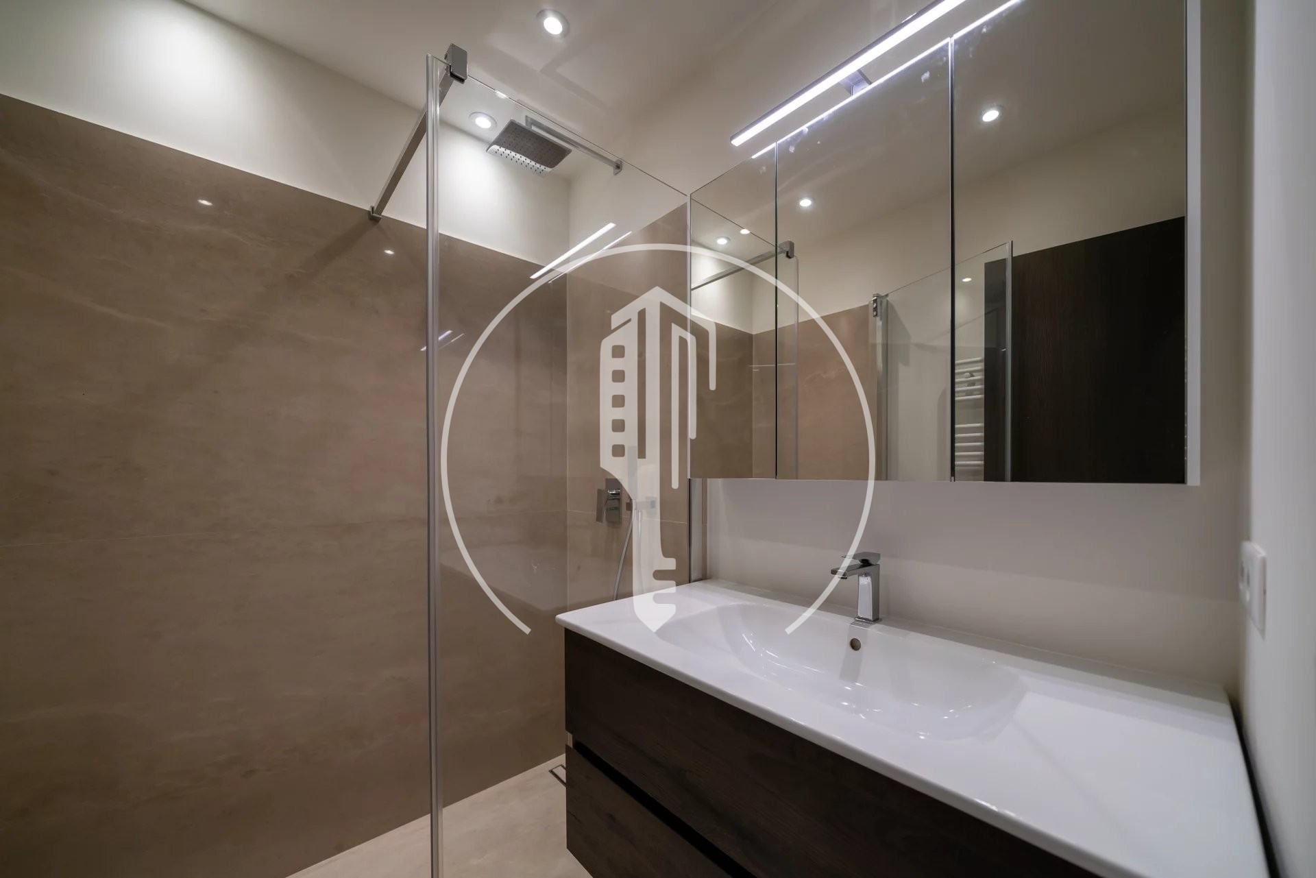 Located on the 12th floor, this 3-room flat with 98 sqm of living space and 20 sqm of terraces features a sea view and a double exposure.