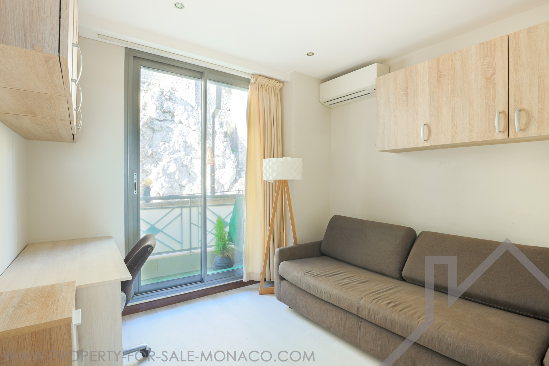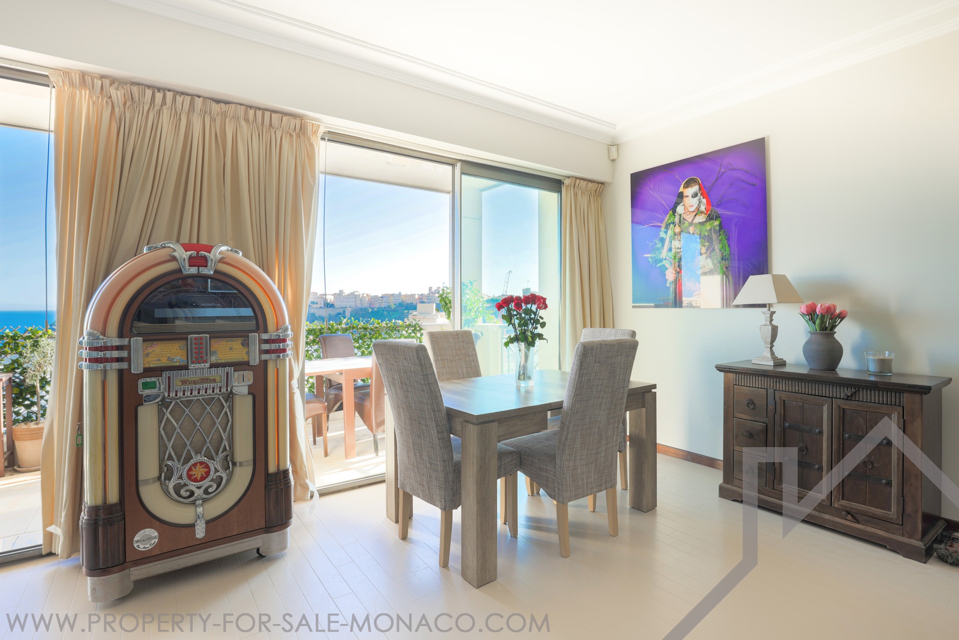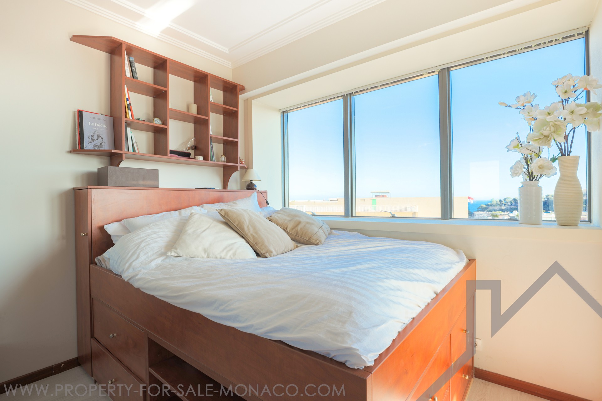The apartment overlooks the port of Monaco and offers a nice view of the sea and the Prince's Palace.