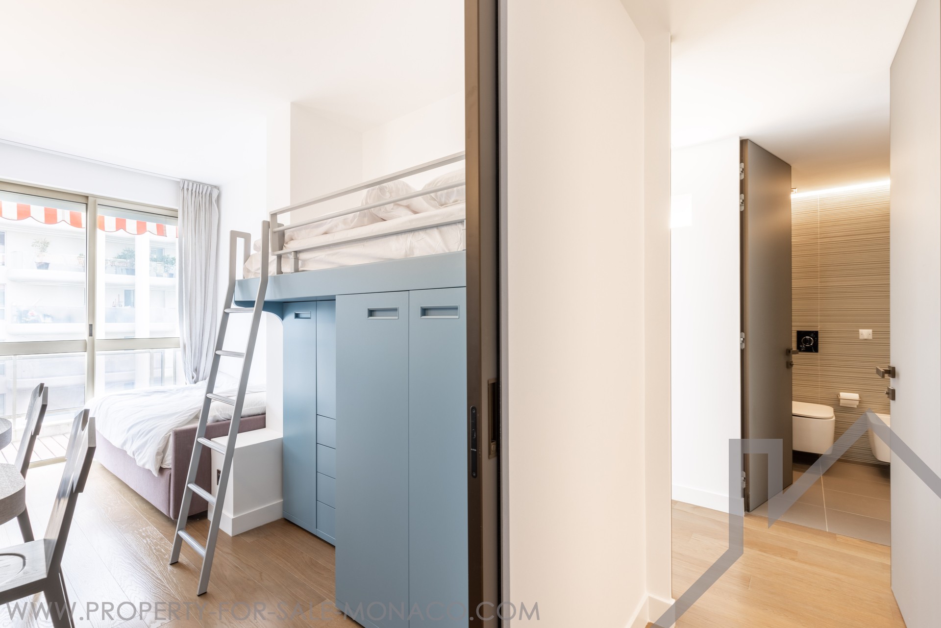 Beautifully renovated 2-bedroom apartment with high-end finishes, located on the 8th floor of a modern building with concierge on Boulevard du Larvotto. Just steps from the beach and shops via the building’s rear access.