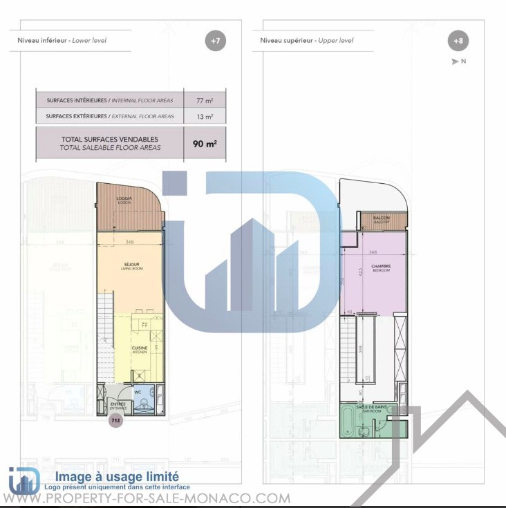 In a luxury residence with concierge, this 2-room duplex apartment on the 7th and 8th floor overlooking the Palace of Monaco consists of: an entrance, an equipped kitchen, a living room, a toilet and a loggia. Upstairs, a large dressing room, a bedroom with a balcony and a bathroom.
