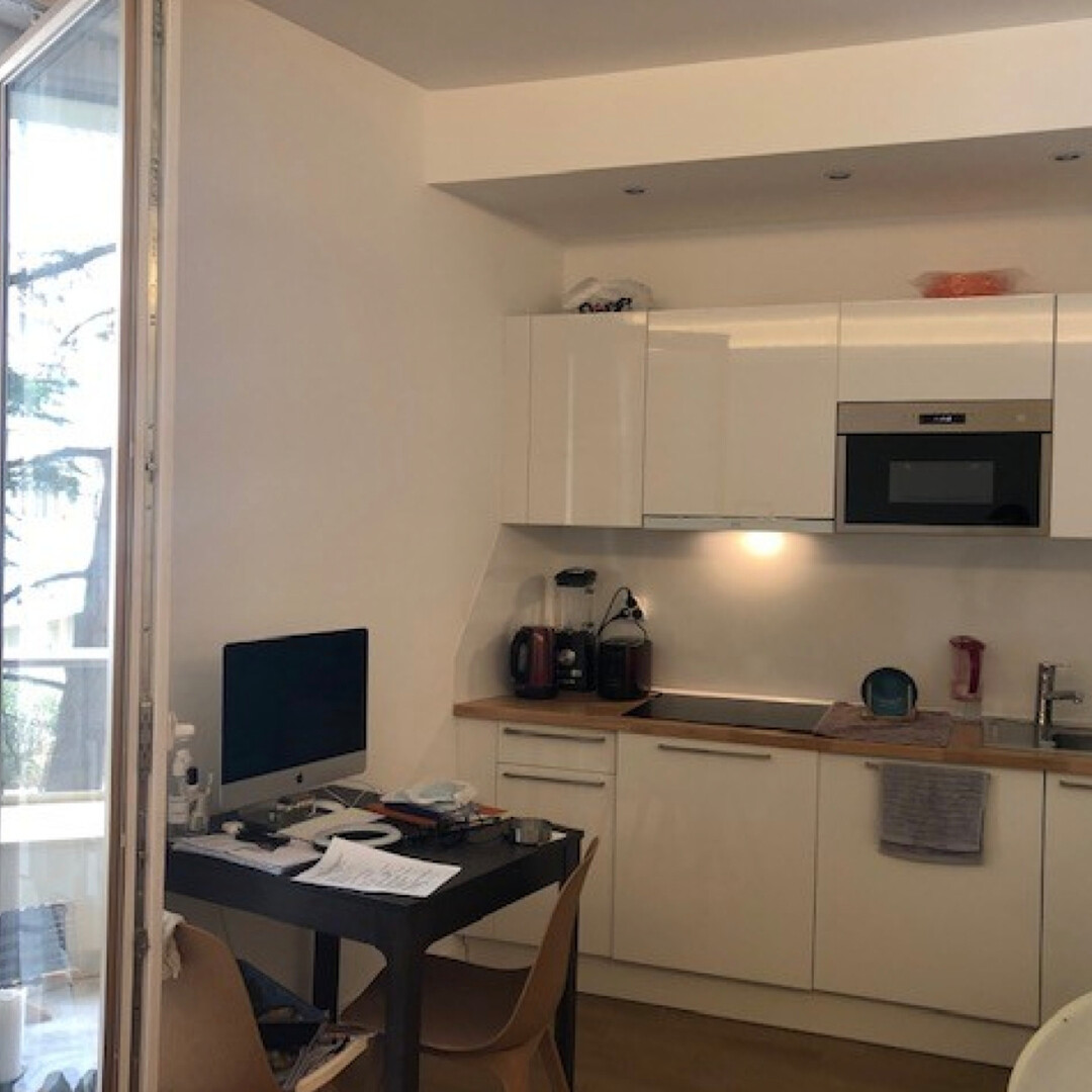 Located in a quiet area, in a building with concierge, this beautiful air-conditioned studio consists of :