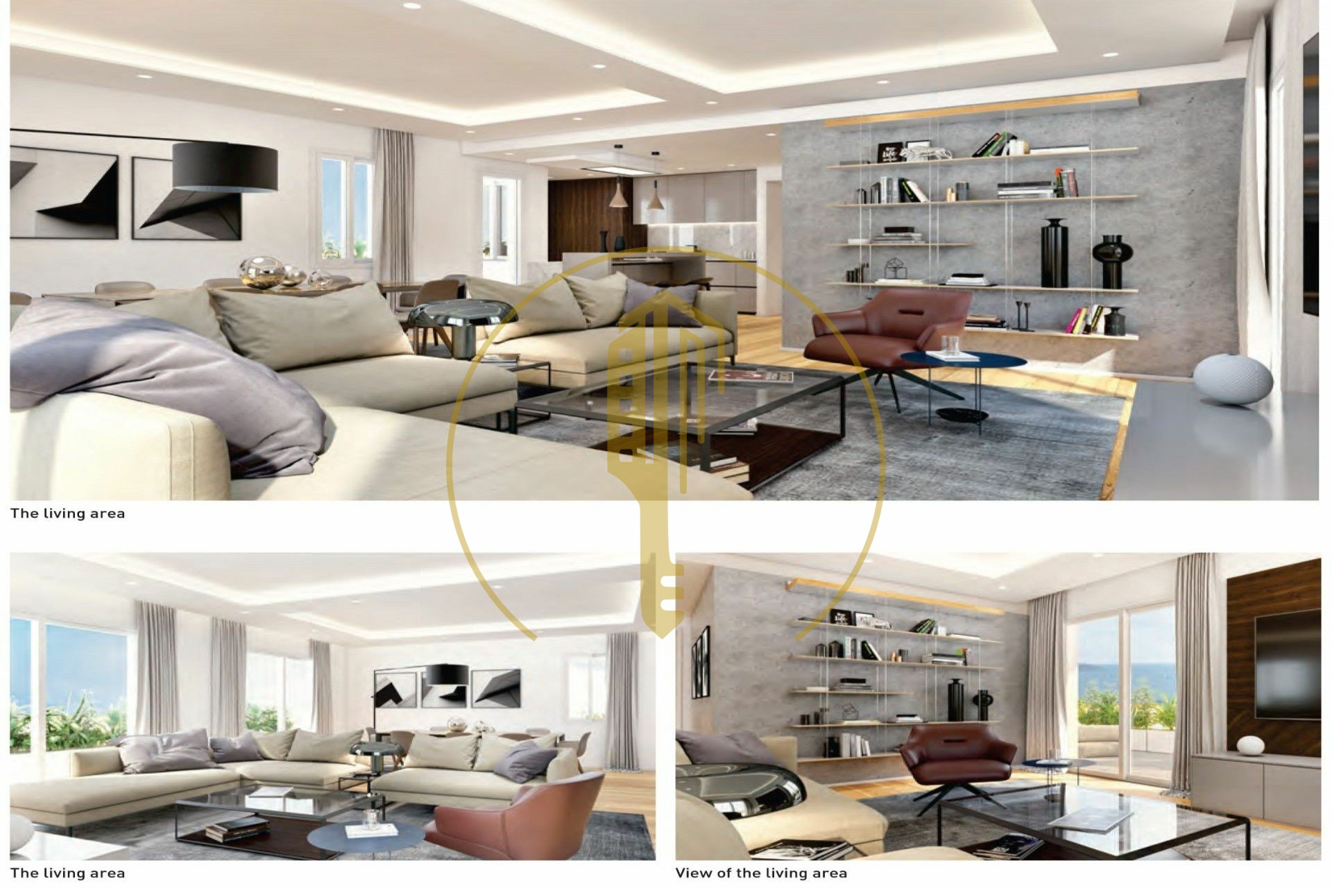 EXCEPTIONAL Penthouse apartment with a splendid panoramic sea view, refurbished, tastefully furnished and decorated in a contemporary style. 1st level with entrance, guest toilet, a large bedroom with en-suite shower room, dressing room and private terrace. Large living room and dining room with open kitchen, bordered by a beautiful terrace. A glass and wood staircase leading to the 2nd level, towards the master bedroom via a hallway leading to the shower room and the dressing room. A separate toilet. The whole floor is surrounded by a beautiful terrace decorated with greenery and furnished. The 3rd level 'terrace', is pleasantly landscaped with greenery around its perimeter and embellished with a large table and chairs, outdoor sofas and sun loungers. Total area 368 m² including 138 m² of living space and 230 m² of terraces. 1 double parking lots.