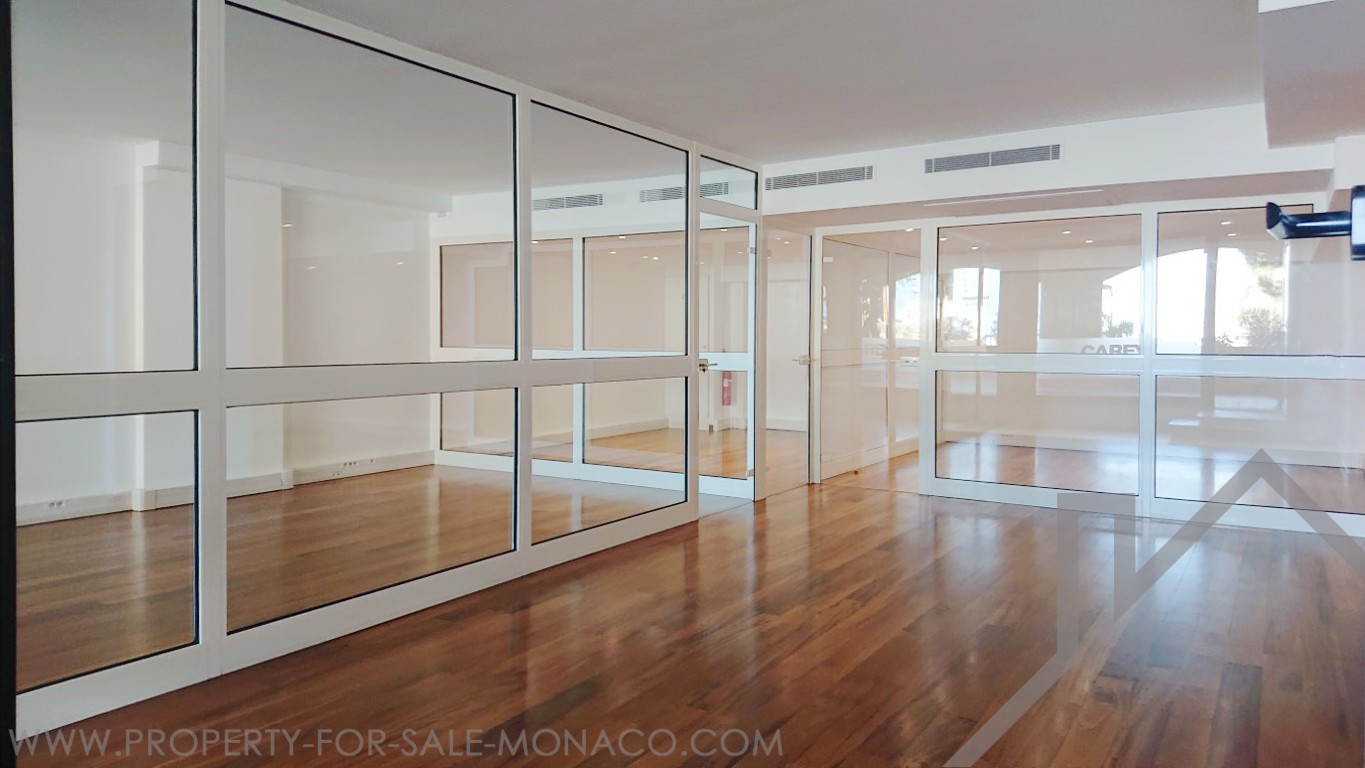 Completely renovated office of 94 m², spacious and bright, with a large window overlooking the gardens and the port of Fontvieille.