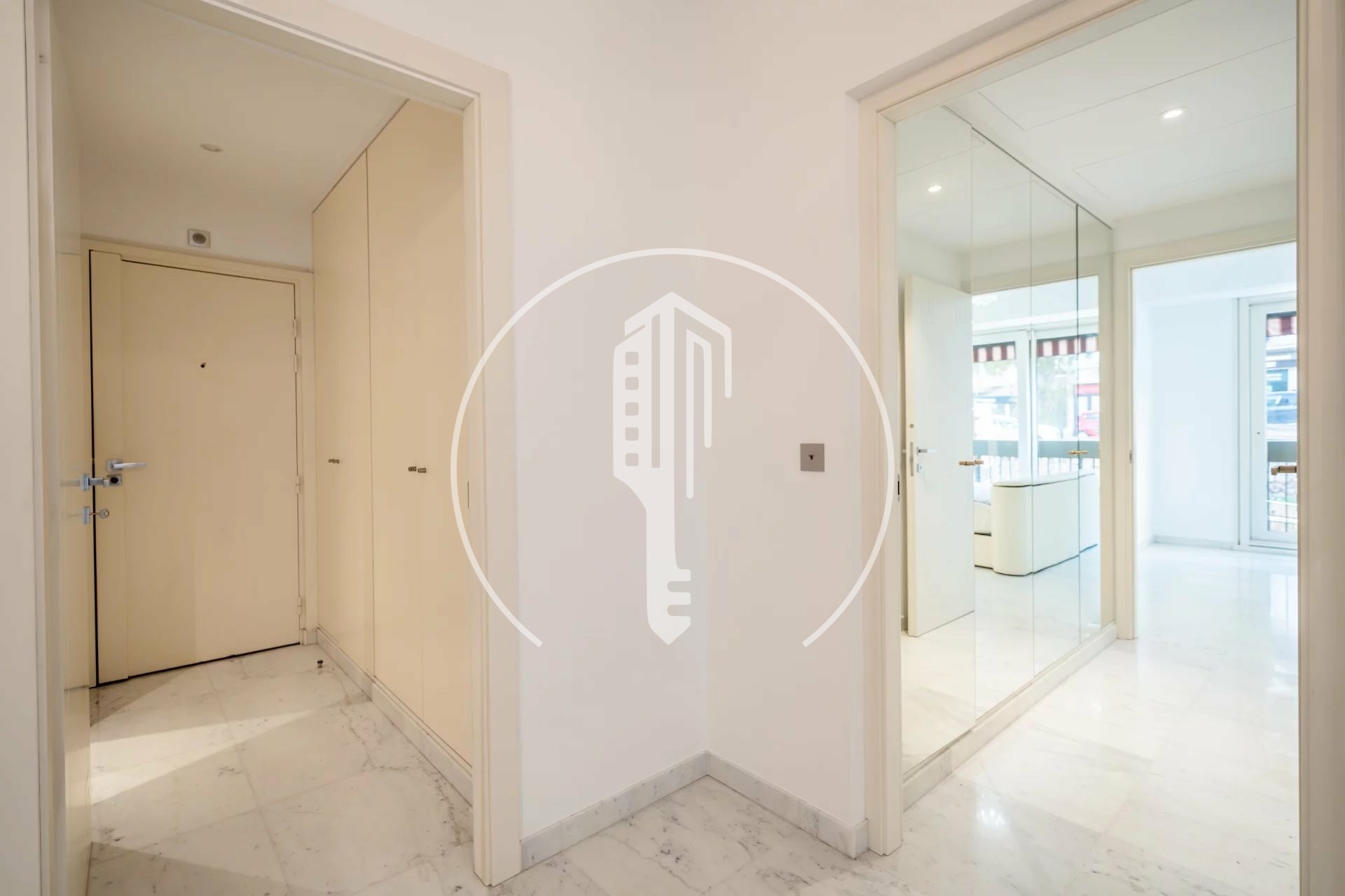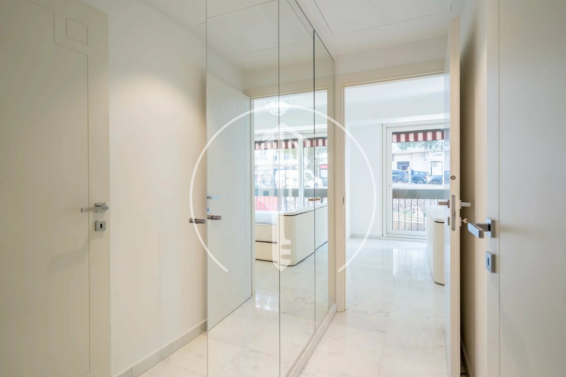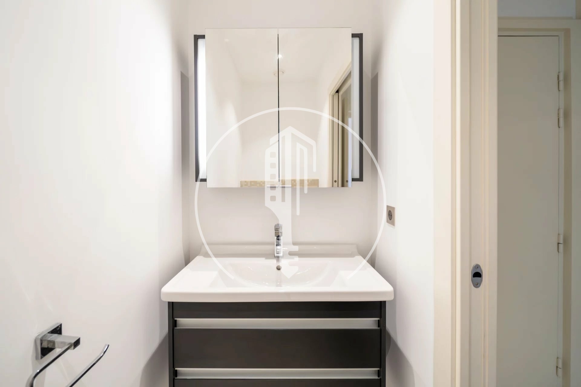 It is composed of : an entrance hall with a closet and a guest toilet, a living room with a fitted kitchen and a balcony, a bedroom with an en suite bathroom.