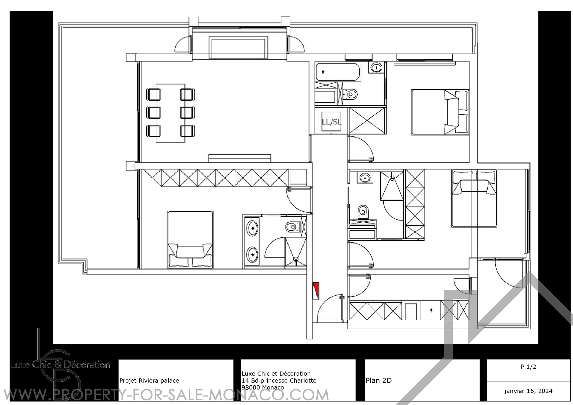 Located in the most prestigious area of the city, this fully renovated apartment offers a luxurious and refined living environment. It features three spacious bedrooms, each with its own private bathroom, ensuring comfort and privacy. Its vast, light-filled living room opens onto a large terrace, offering breathtaking views of the Casino and the sea.