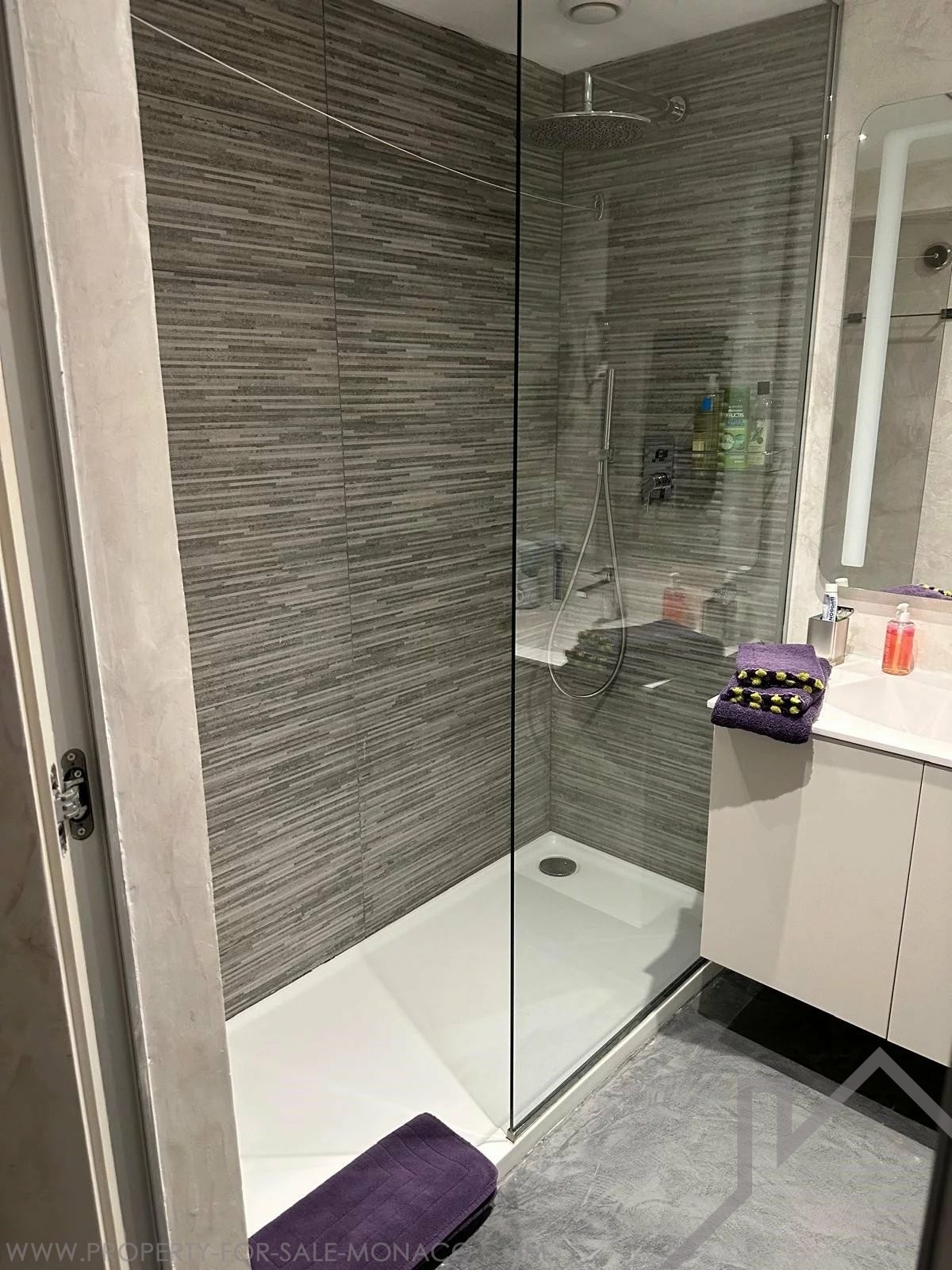 The studio, with an area of 40 m², includes an entrance hall with fitted wardrobe, a main room with an equipped kitchen, a sleeping area and a full shower room. It enjoys a view of the sea and Cap Martin. The studio is sold with a cellar and parking.