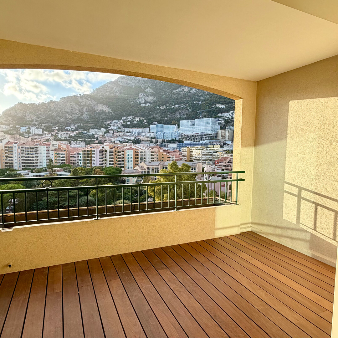 Located in a luxury residence in Fontvieille, this elegant 2-room apartment of 69 m² in total (including 53 m² of living space and 16 m² of terraces) has been completely renovated with contemporary and refined finishes.