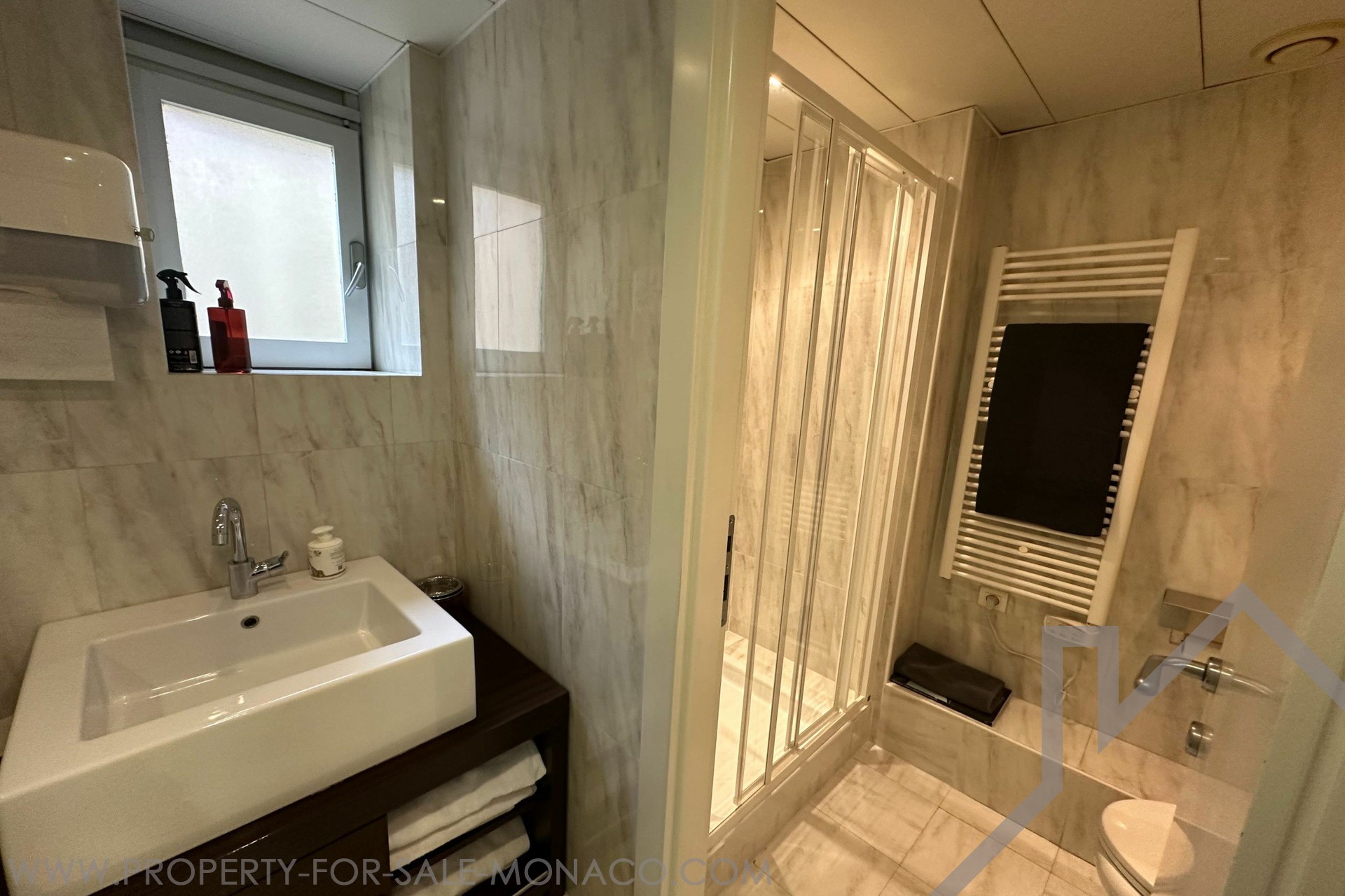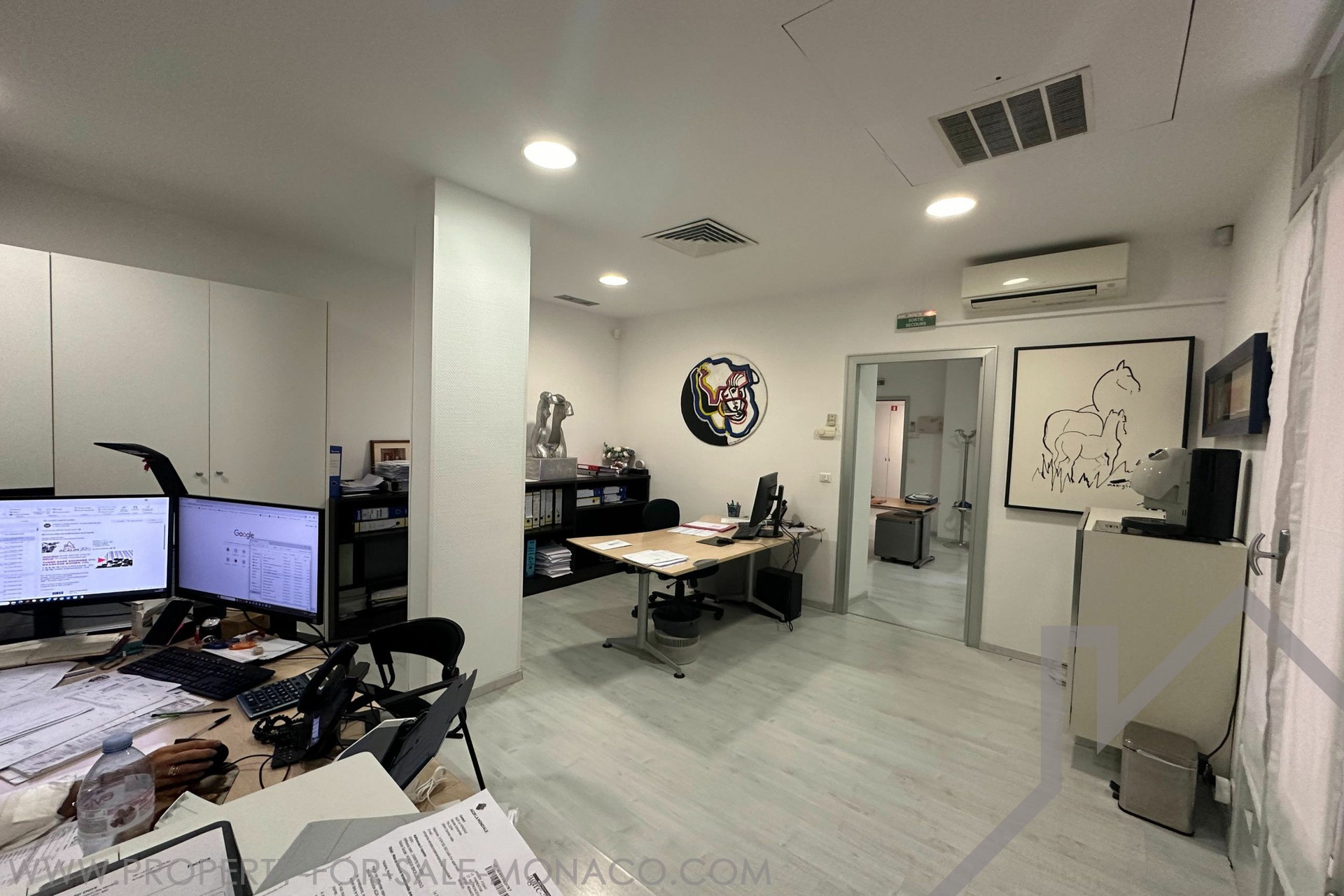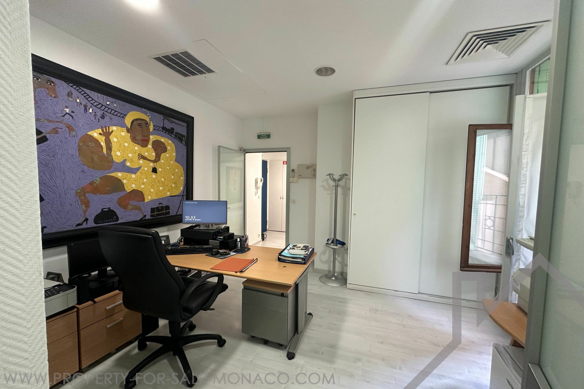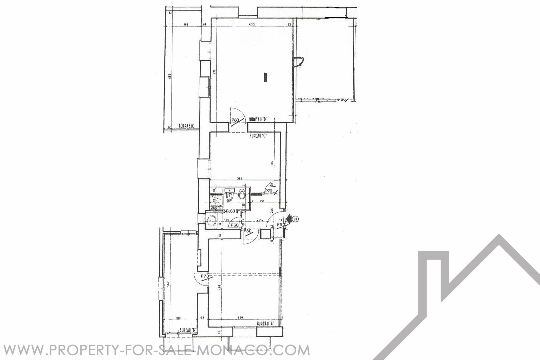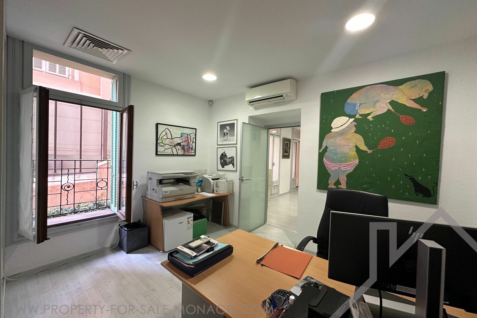 LARGE 4-room OFFICE in a bourgeois building, close to all amenities, located on Boulevard des Moulins. It has a total surface area of 123 m² including 116 m² of living space and a 7 m² terrace. Description: 4 rooms, 1 secure room with armored door, a bathroom with shower, WC and sink. Possibility of transforming into residential use Free quickly.