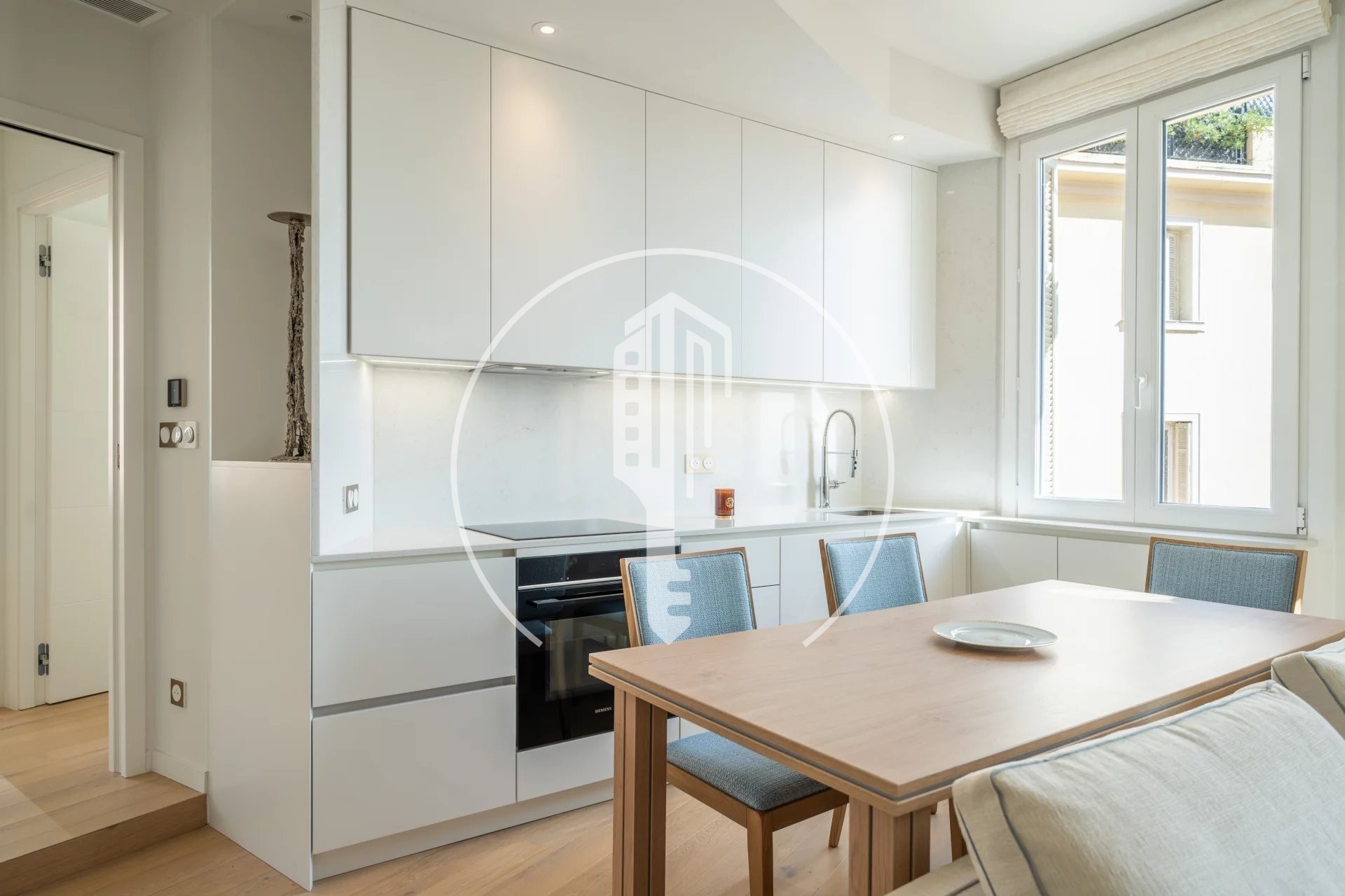 This renovated and furnished 2-room apartment, located on the 4th floor, with 55.8 sqm of living space and 3.4 sqm of balconies, enjoys a sea view and optimal exposure.