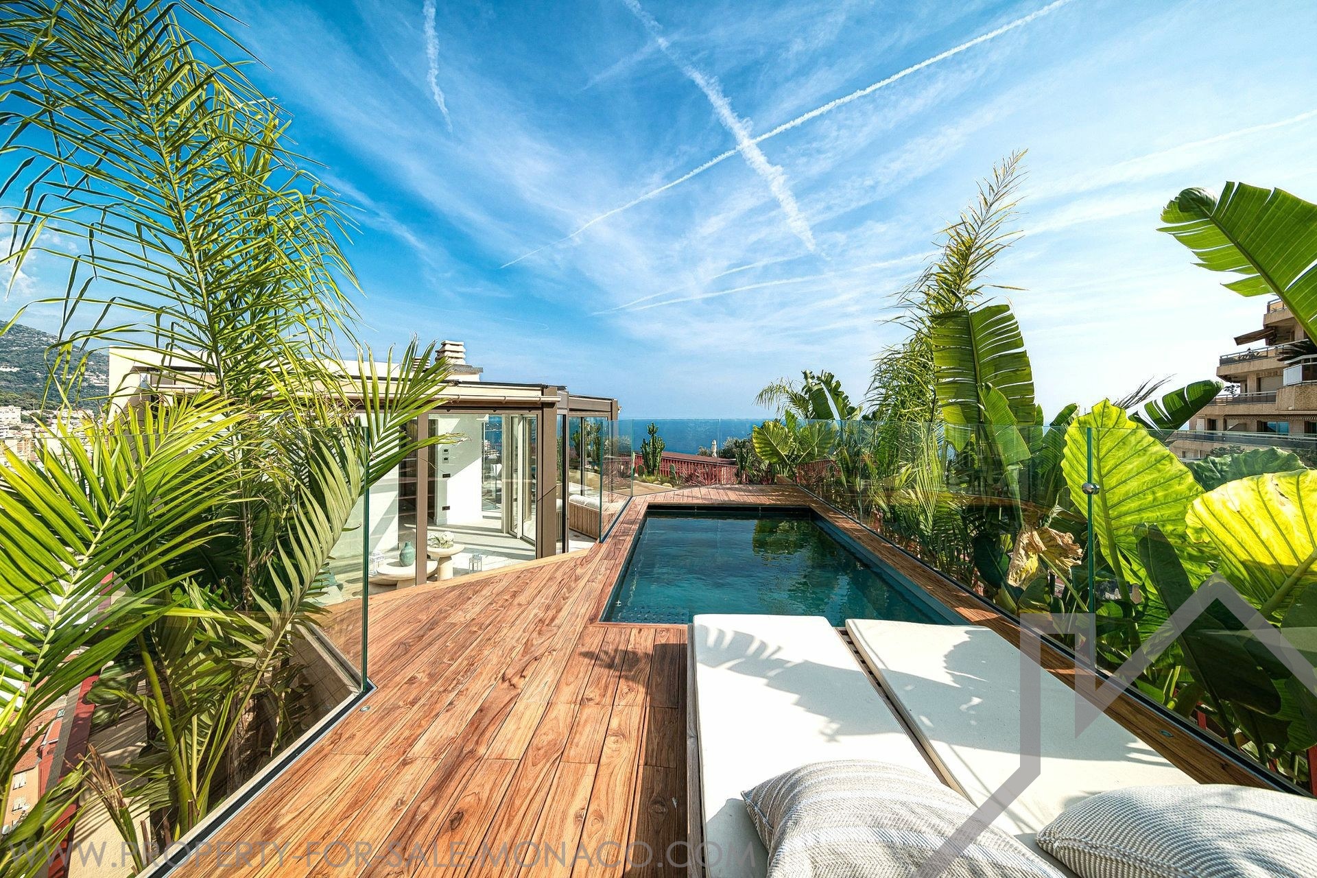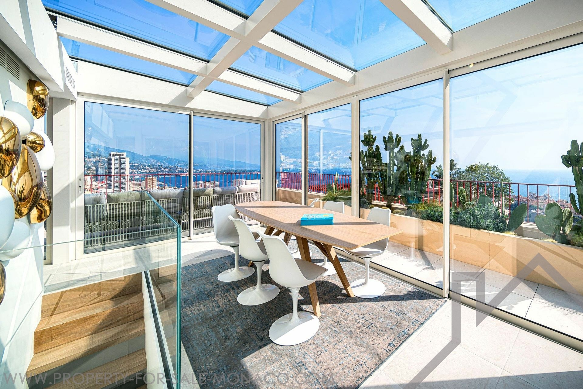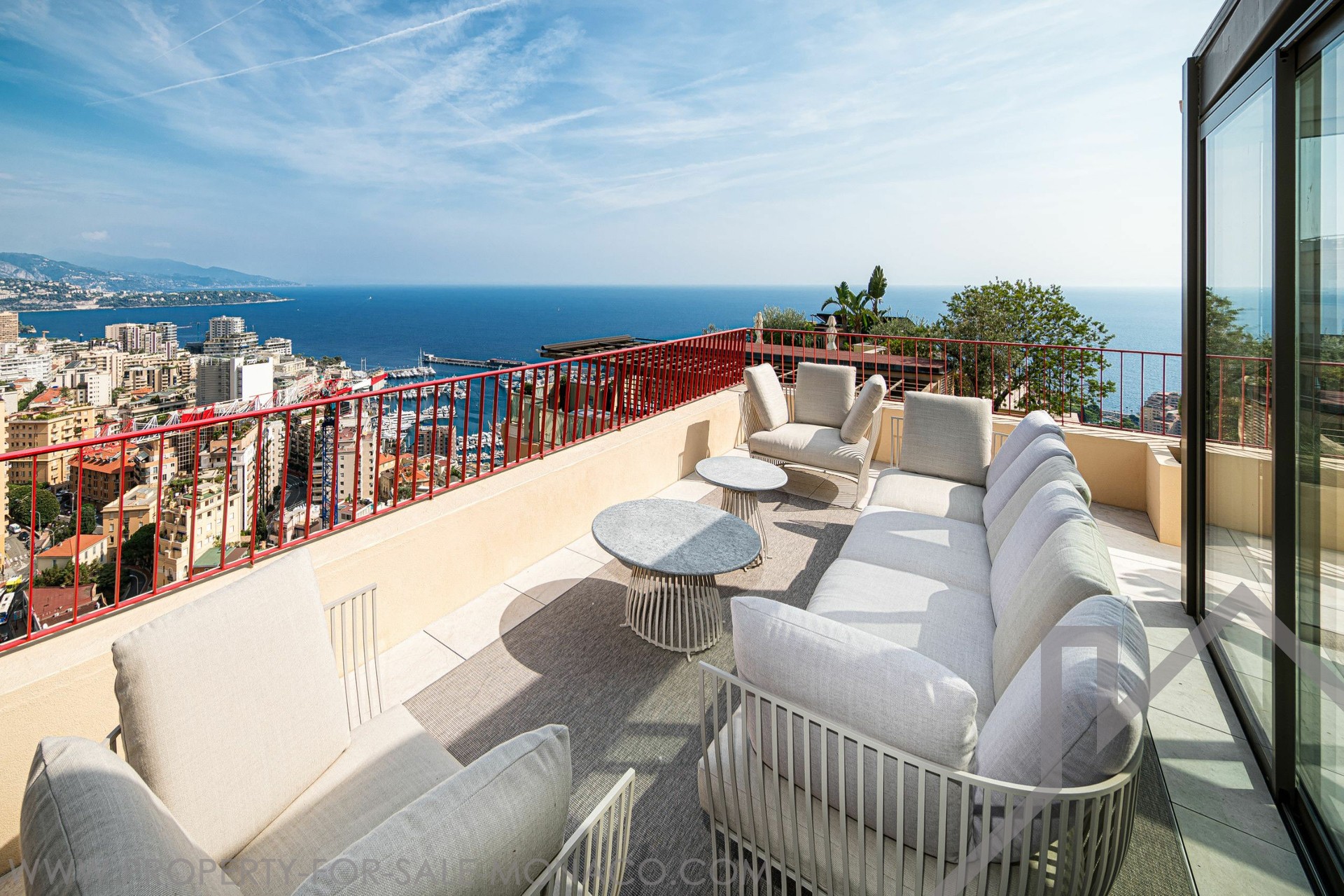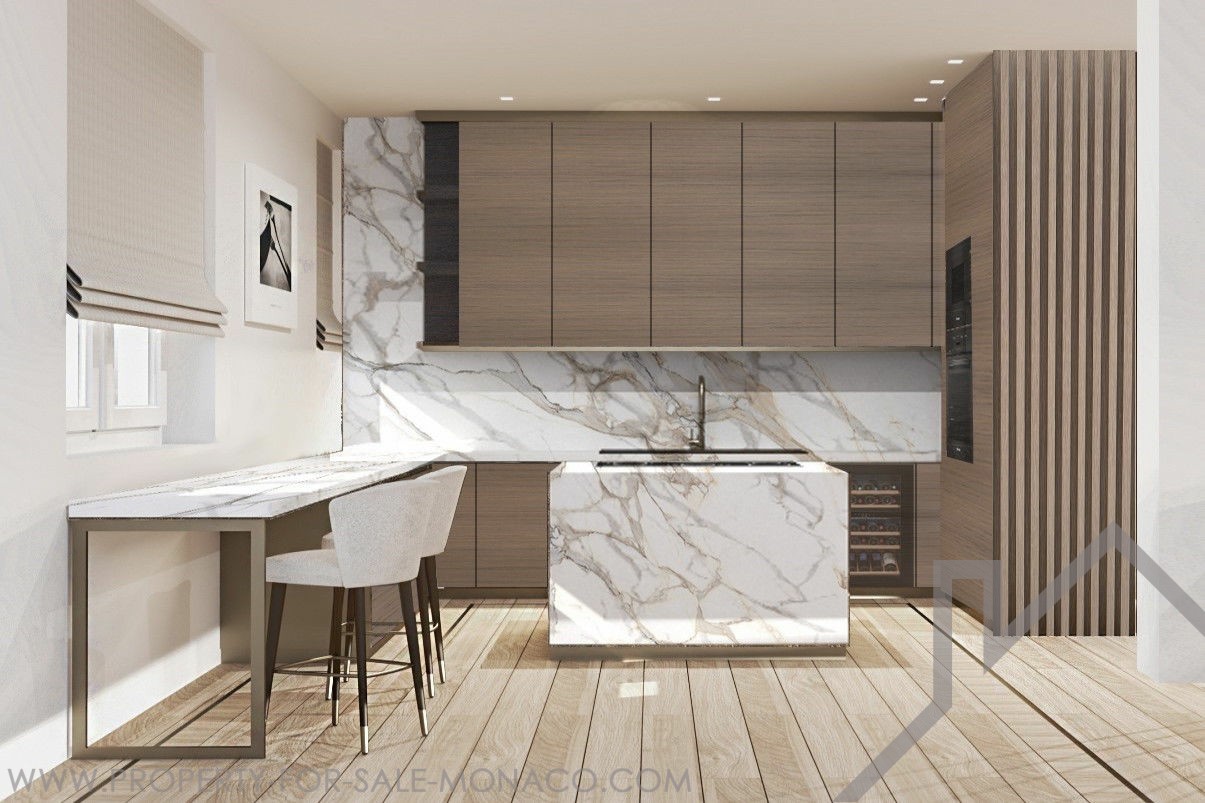 Offering a beautiful sea and Principality view, this ELEGANT DUPLEX of 5 ROOMS, with SWIMMING POOL on its roof terrace, has been completely renovated with high quality materials.Its 426 m² of total area spread over 2 floors are arranged as follows: 5th floor: Entrance hall, open fitted kitchen, dining room, living room, master bedroom with en-suite bathroom opening onto the terrace, a guest toilet, 3 bedrooms with bathroom or shower. 6th floor: Large terrace with swimming pool and veranda, dining area, lounge area, summer kitchen, large wine cellar, private entrance, laundry room, guest toilet. 4 car parks and 1 cellar.