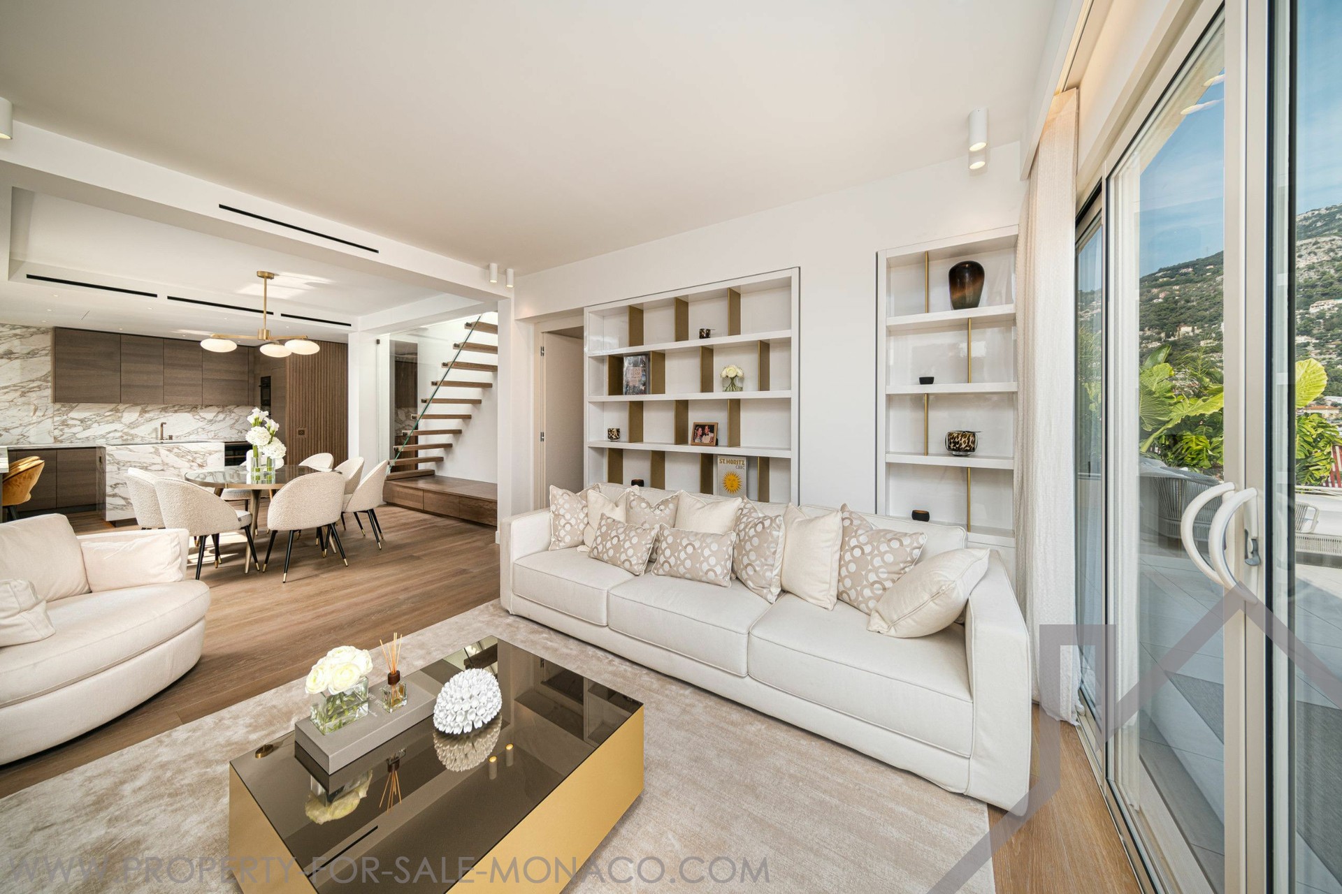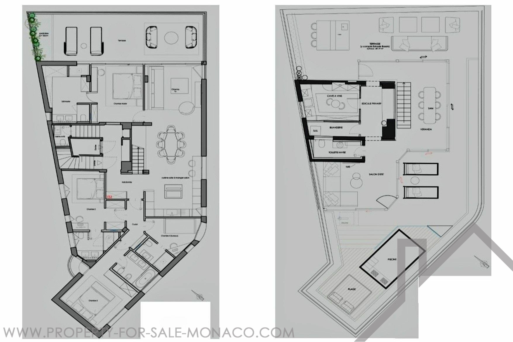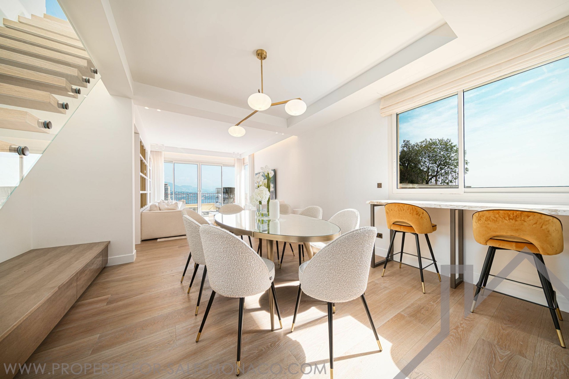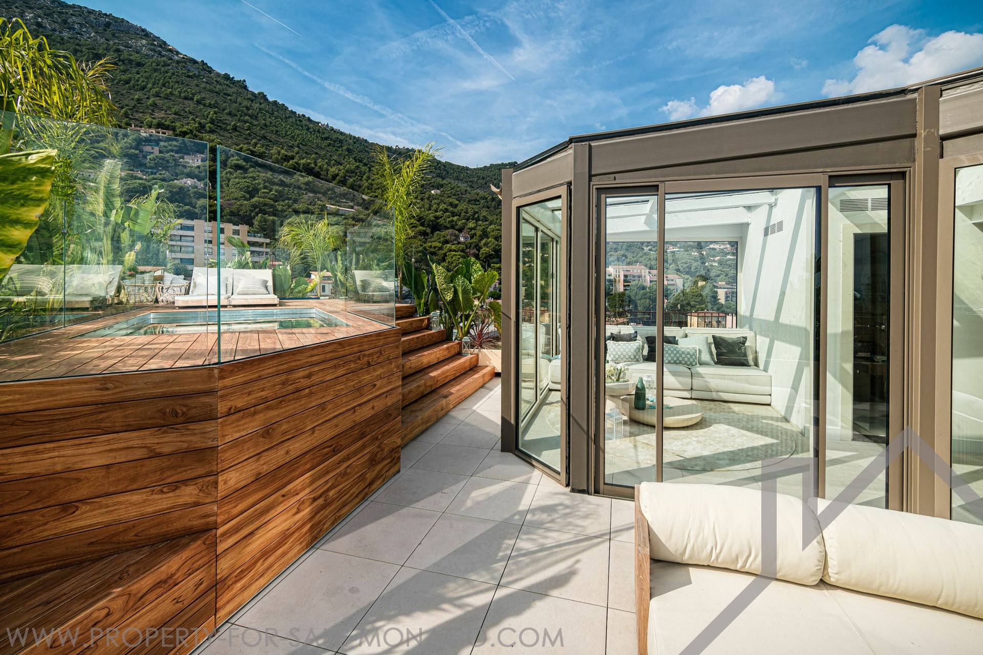 Offering a beautiful sea and Principality view, this ELEGANT DUPLEX of 5 ROOMS, with SWIMMING POOL on its roof terrace, has been completely renovated with high quality materials.Its 426 m² of total area spread over 2 floors are arranged as follows: 5th floor: Entrance hall, open fitted kitchen, dining room, living room, master bedroom with en-suite bathroom opening onto the terrace, a guest toilet, 3 bedrooms with bathroom or shower. 6th floor: Large terrace with swimming pool and veranda, dining area, lounge area, summer kitchen, large wine cellar, private entrance, laundry room, guest toilet. 4 car parks and 1 cellar.