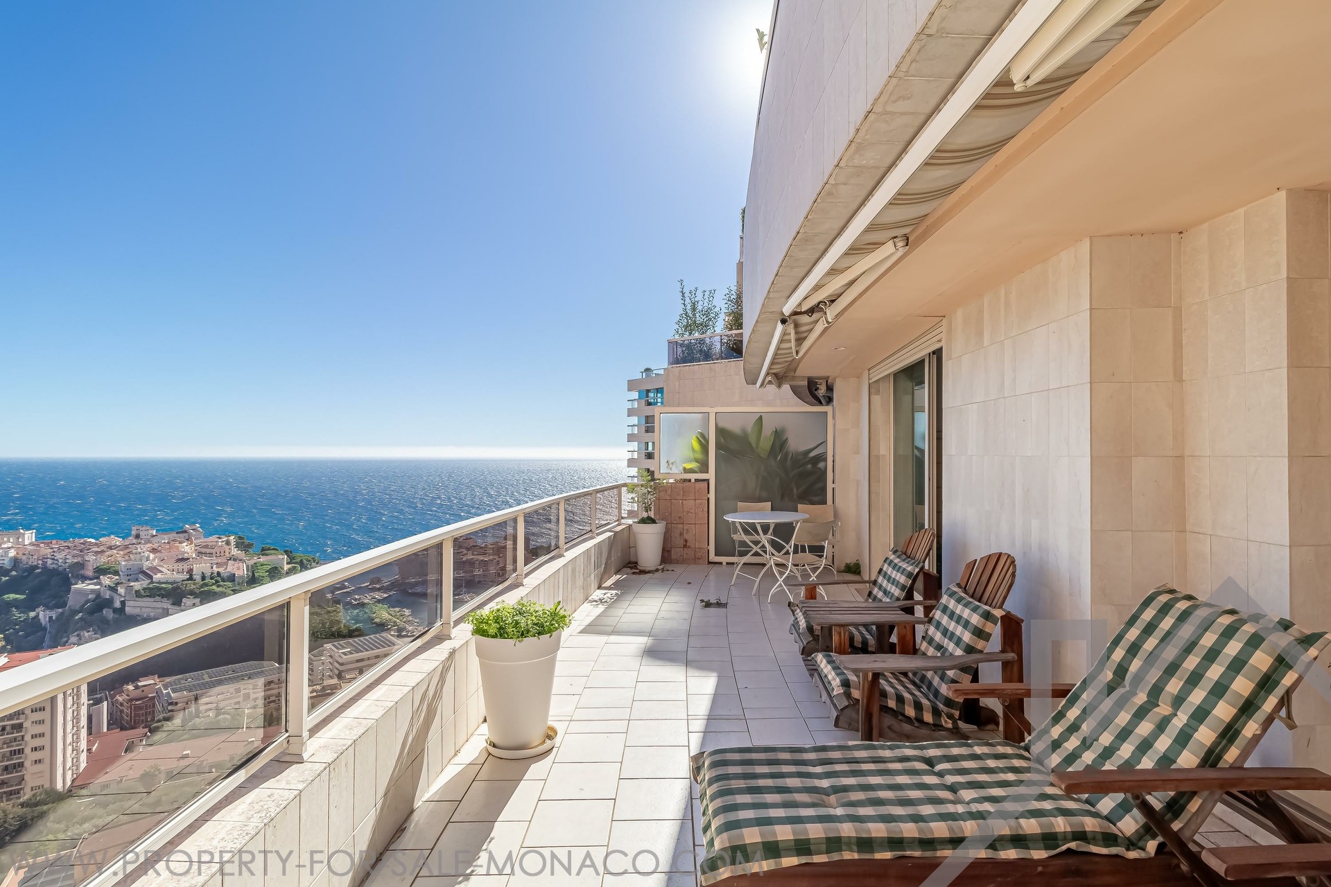 Located in Jardin Exotique district, this apartment of 119 sqm of living space and 79 sqm of terrace boasts a nice view of port