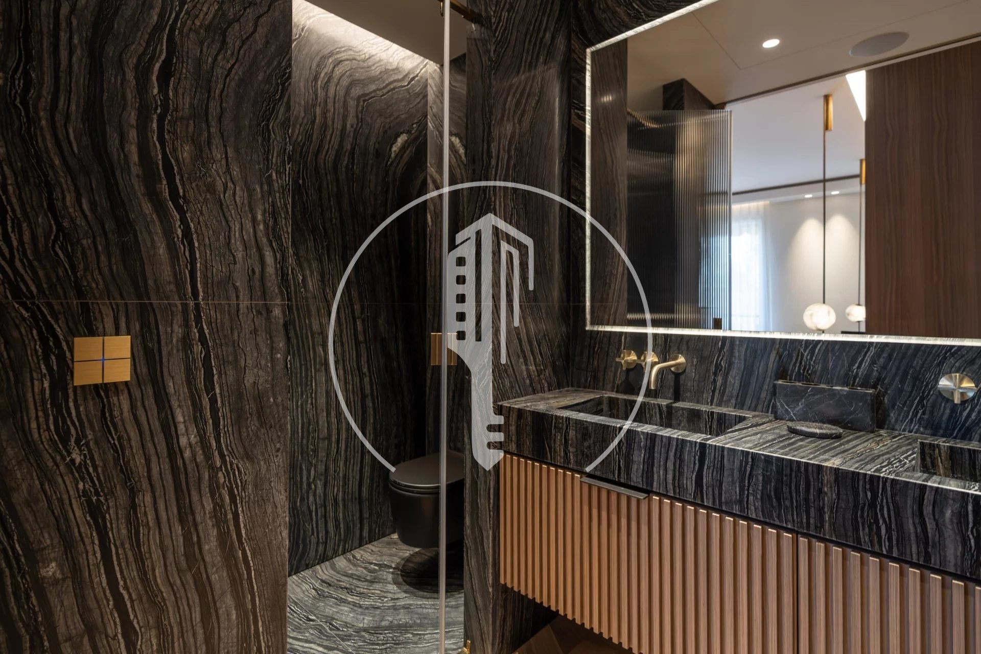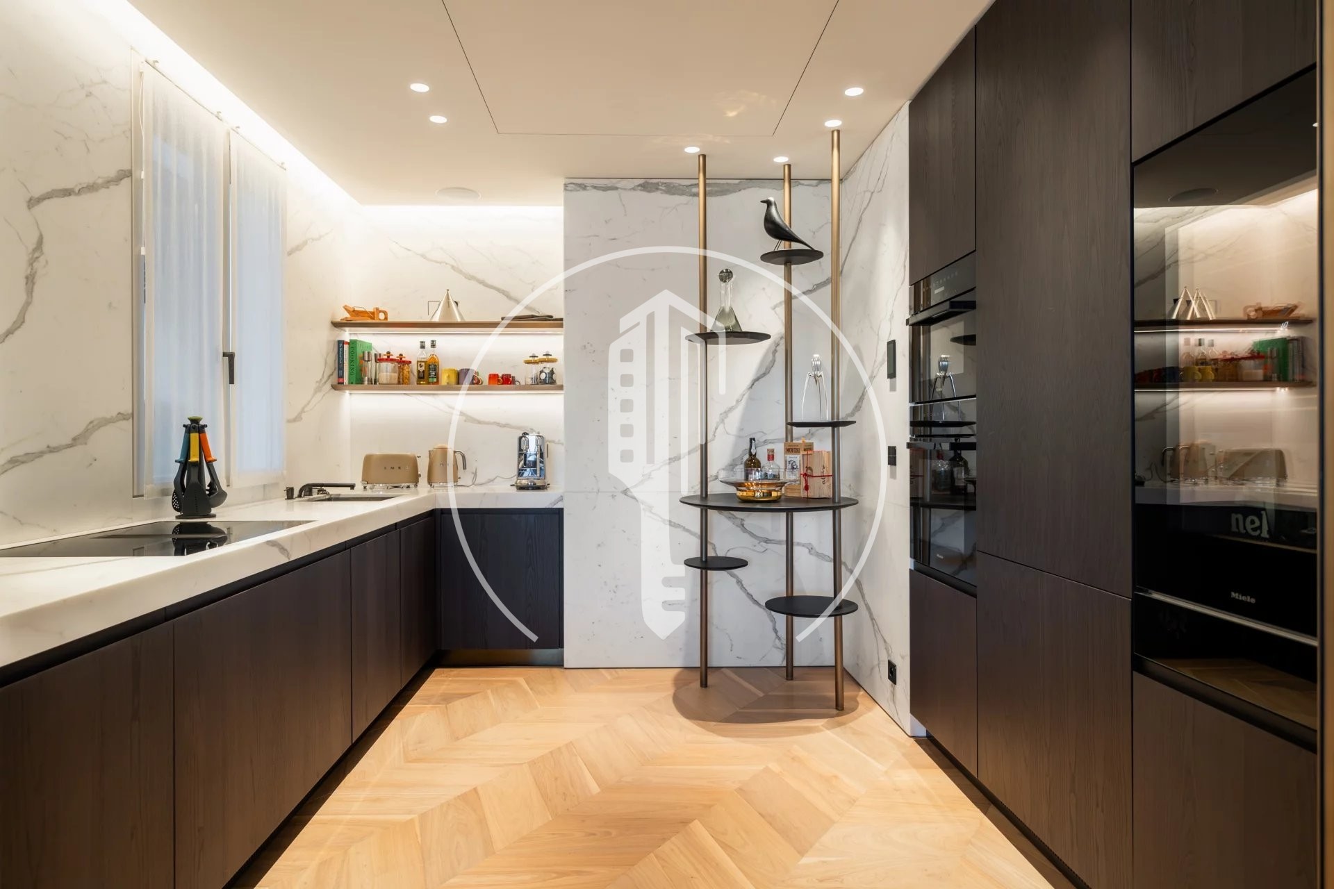 Unique and rare 4-room apartment with 185 sqm of living space and 15 sqm of balconies. It has been renovated with luxury finishes and enjoys high ceilings.