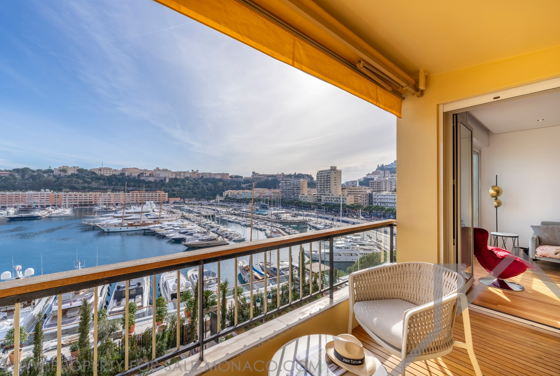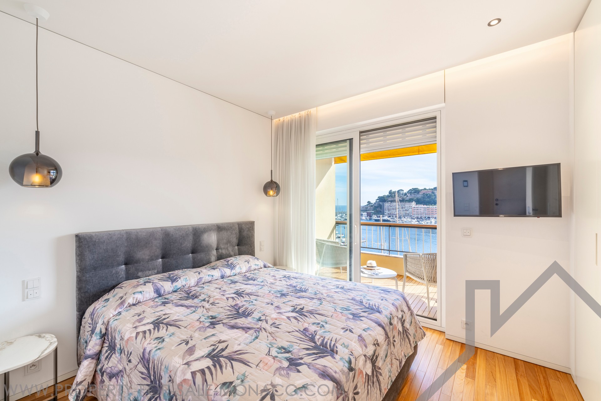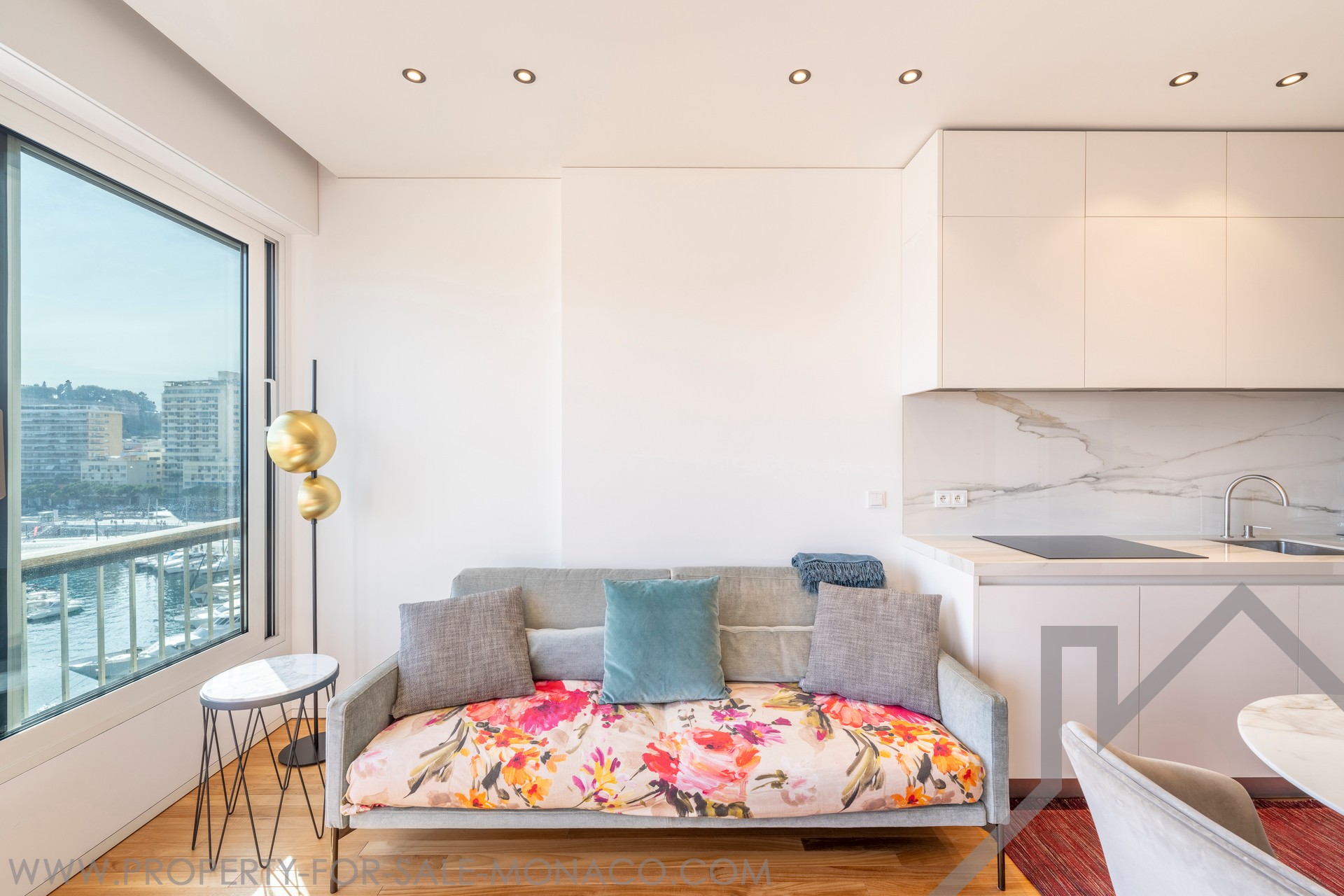 This superb 2-room apartment has been completely renovated and furnished with quality materials, also benefiting from an integrated home automation system. It consists of an entrance hall with cupboards, a living room with a fitted kitchen opening onto a beautiful loggia offering a panoramic view of Port Hercule, the Formula 1 circuit and the Rock. The sleeping area includes a full shower room, plenty of storage space and a bedroom opening onto the loggia.