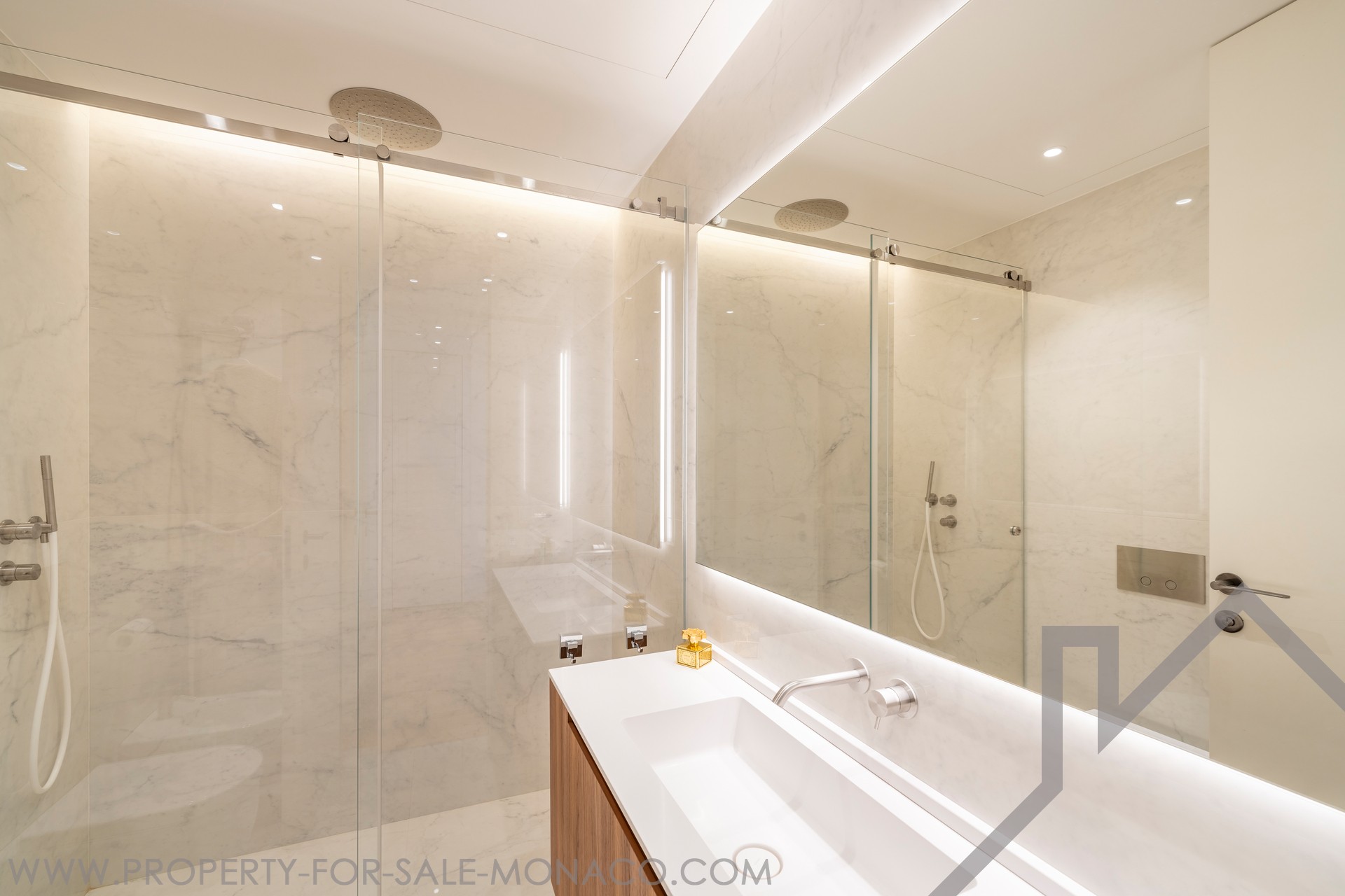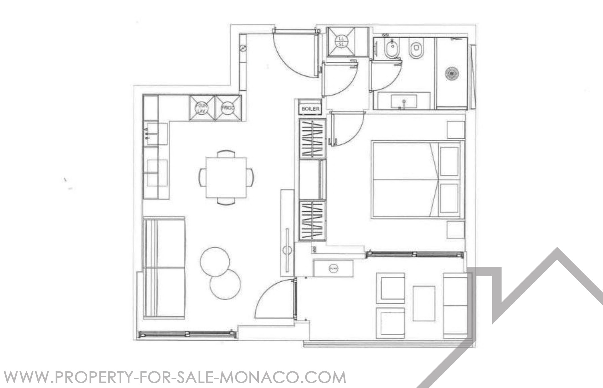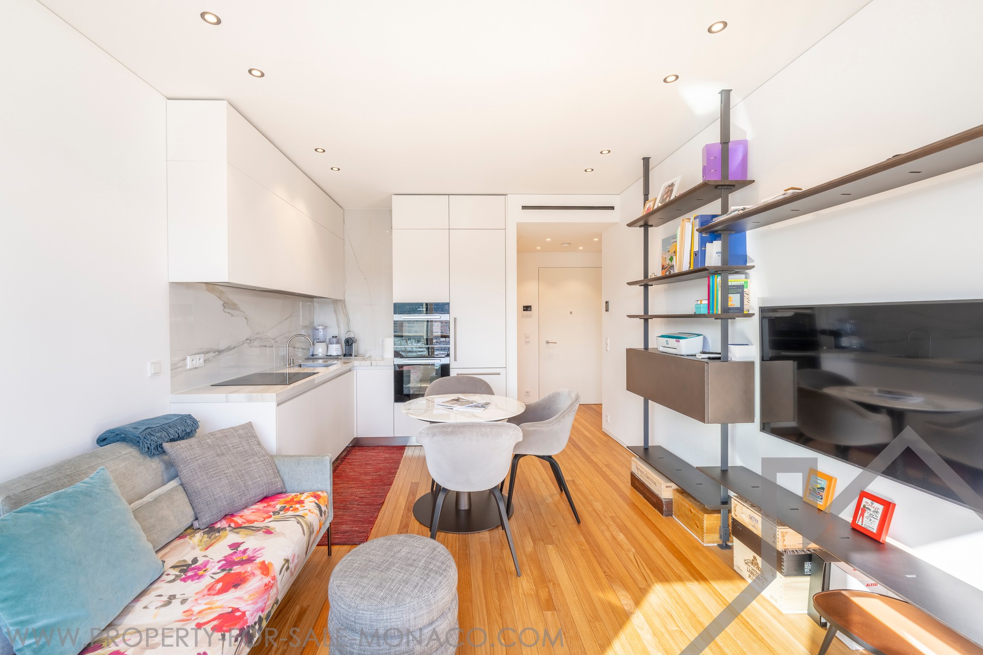 This superb 2-room apartment has been completely renovated and furnished with quality materials, also benefiting from an integrated home automation system. It consists of an entrance hall with cupboards, a living room with a fitted kitchen opening onto a beautiful loggia offering a panoramic view of Port Hercule, the Formula 1 circuit and the Rock. The sleeping area includes a full shower room, plenty of storage space and a bedroom opening onto the loggia.