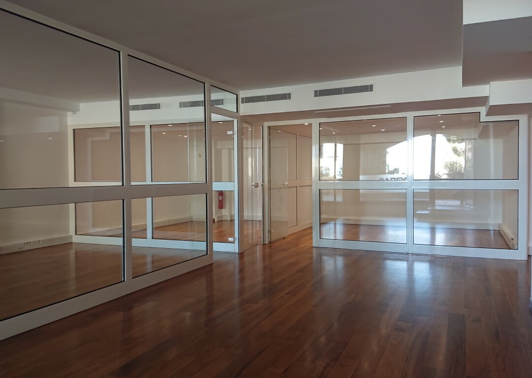 Independent office, in the district of Fontvieille. It consists of several workspaces with glass partitions and two toilets with a hand-washing basin. It offers a large window display and is located in a pleasant setting with a pleasant view of the gardens.