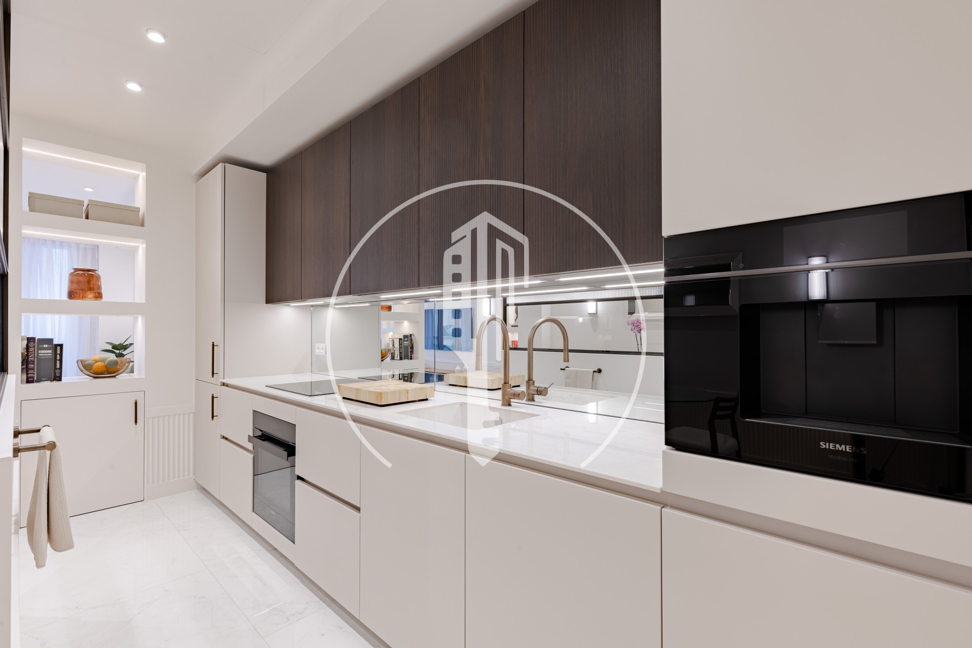 This elegant apartment, completely renovated with high quality materials, combines modernity and bourgeois charm. It consists of a spacious and bright double living room with a dining area and a modern kitchen equipped with integrated appliances.