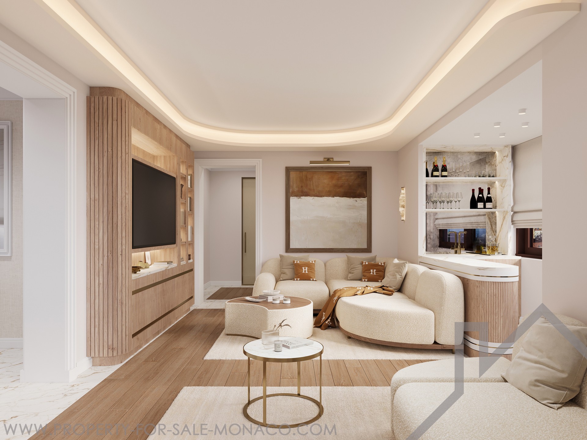Located in a building in Monte Carlo, this 223 m² dual-aspect apartment, currently undergoing renovation, offers an elegant living environment with breathtaking views of the sea and the Casino.