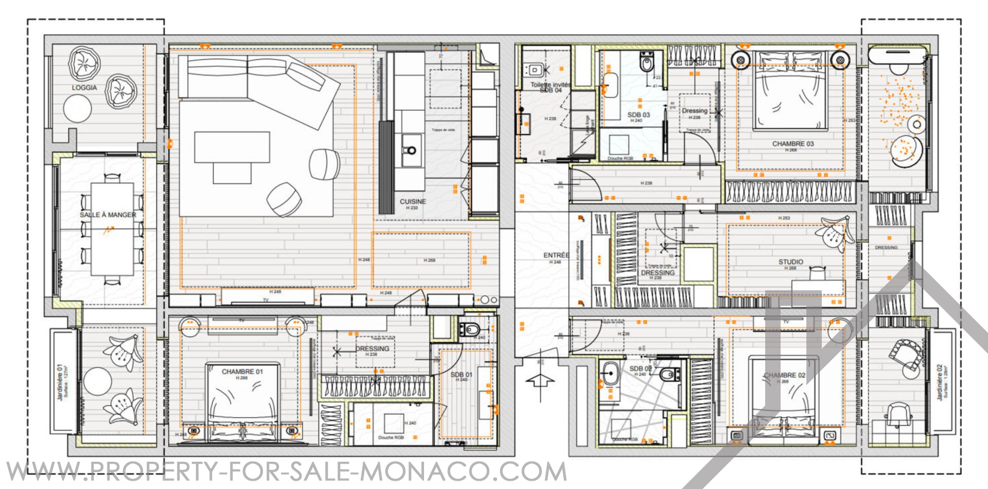 The apartment is nestled in the peaceful, residential area of Fontvieille, within the sought-after Les Cyclades residence. Ideally located near the Port de Fontvieille and renowned restaurants, it offers the perfect balance of tranquility and accessibility. Enjoy concierge services and access to a common outdoor heated pool within the residence.