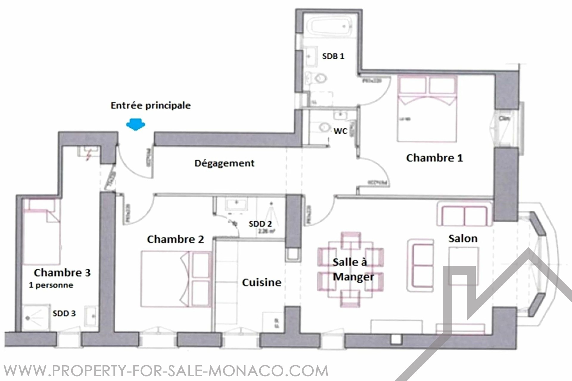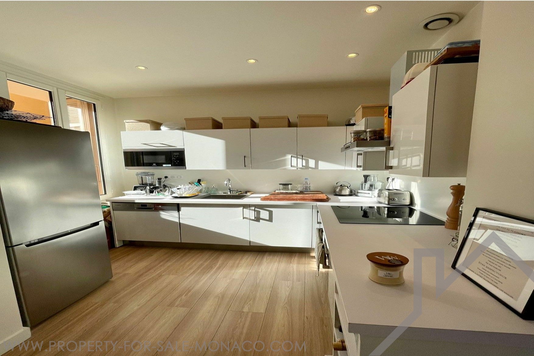 In the Larvotto district, close to the beaches, a fully renovated and bright 4-room apartment with hardwood floors. It features a spacious living room, a fully equipped kitchen, three bedrooms, each with its own private bathroom, and a guest toilet. Air-conditioned. Under law 887. Possibility to purchase a parking space nearby in Villa Bianca on level -1.