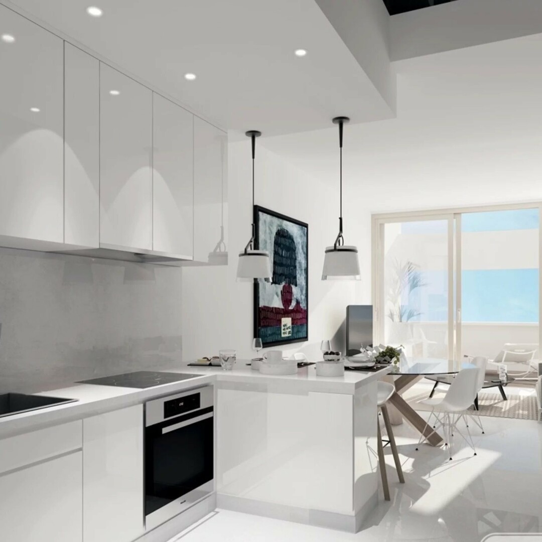 The apartment comprises: entrance hall, living room with open-plan fitted and furnished kitchen, terrace, bedroom, bathroom with toilet, guest toilet.
