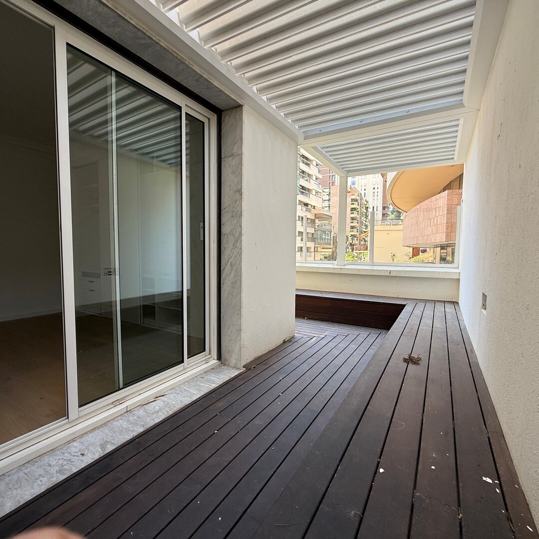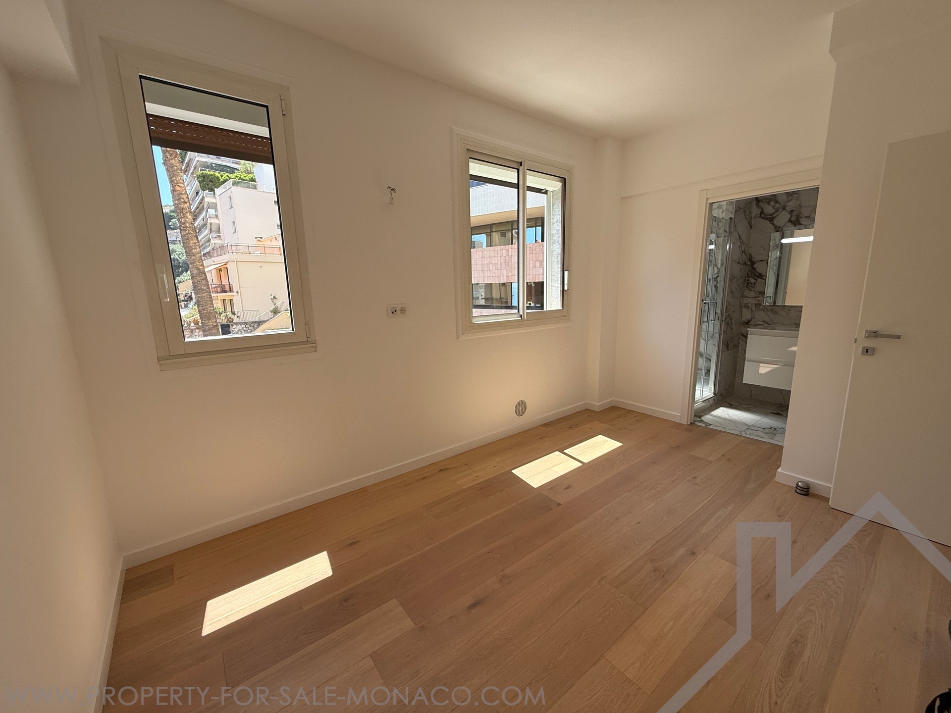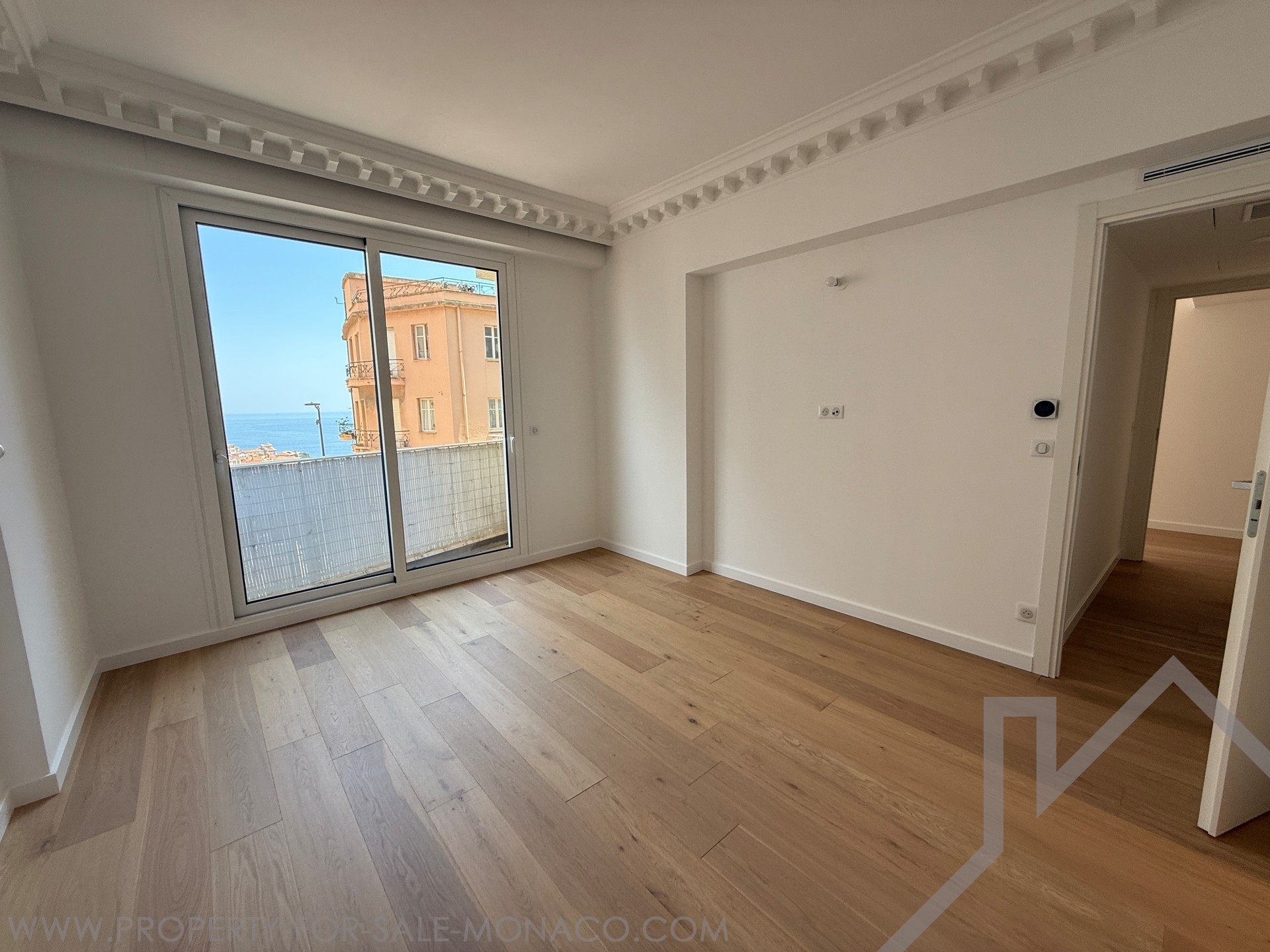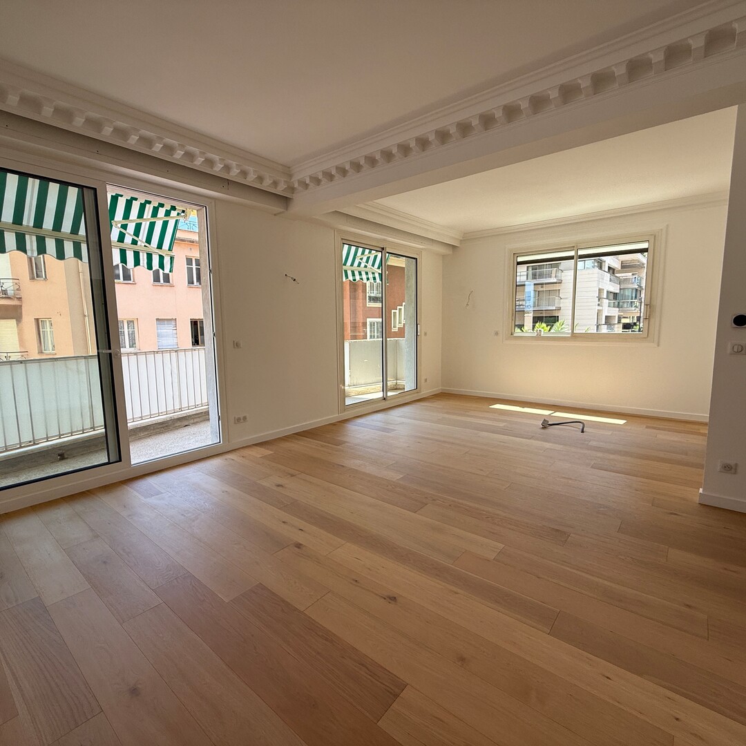 Completely renovated, this 4-room apartment is distinguished by high ceilings and a fluid distribution. The double living room with open fitted kitchen opens onto a balcony, favouring light and conviviality. Three bedrooms, each with its own en-suite bathroom, ensure comfort and privacy on a daily basis. A guest toilet completes the day area. A large terrace, easily convertible as needed, extends the living space. Two cellars provide appreciable storage. The apartment enjoys a partial view of the Rock and the sea.