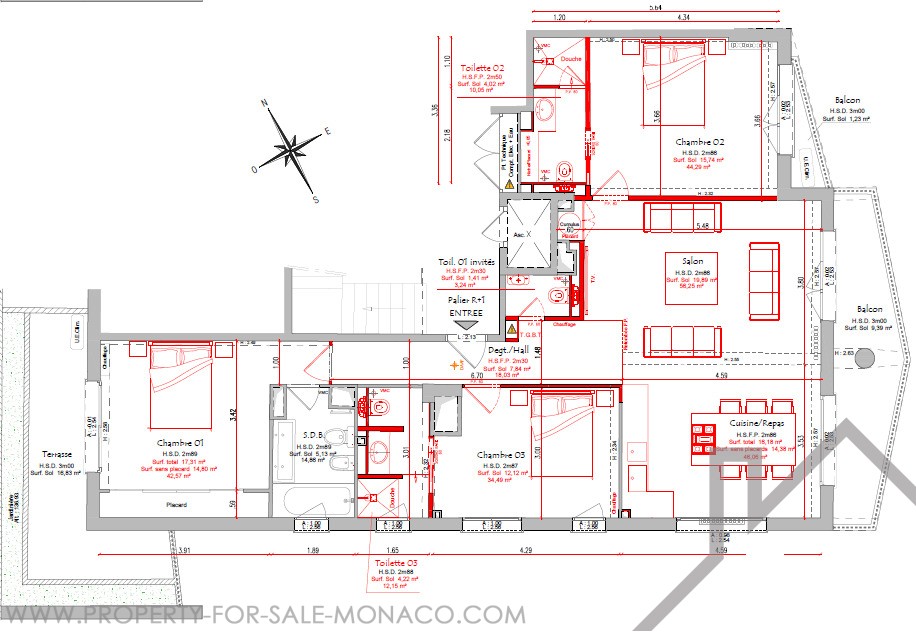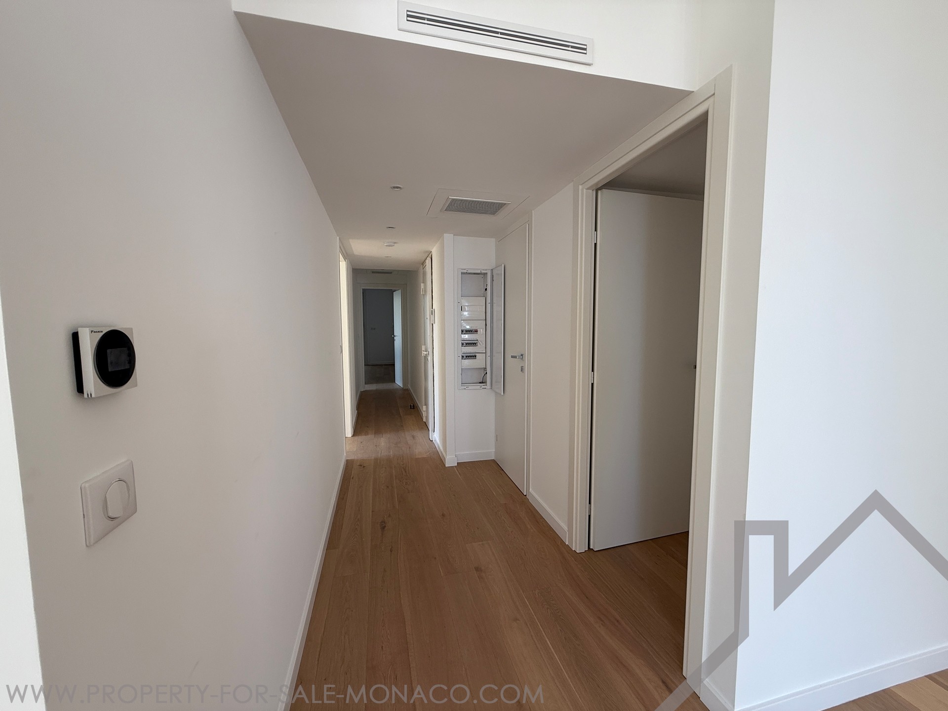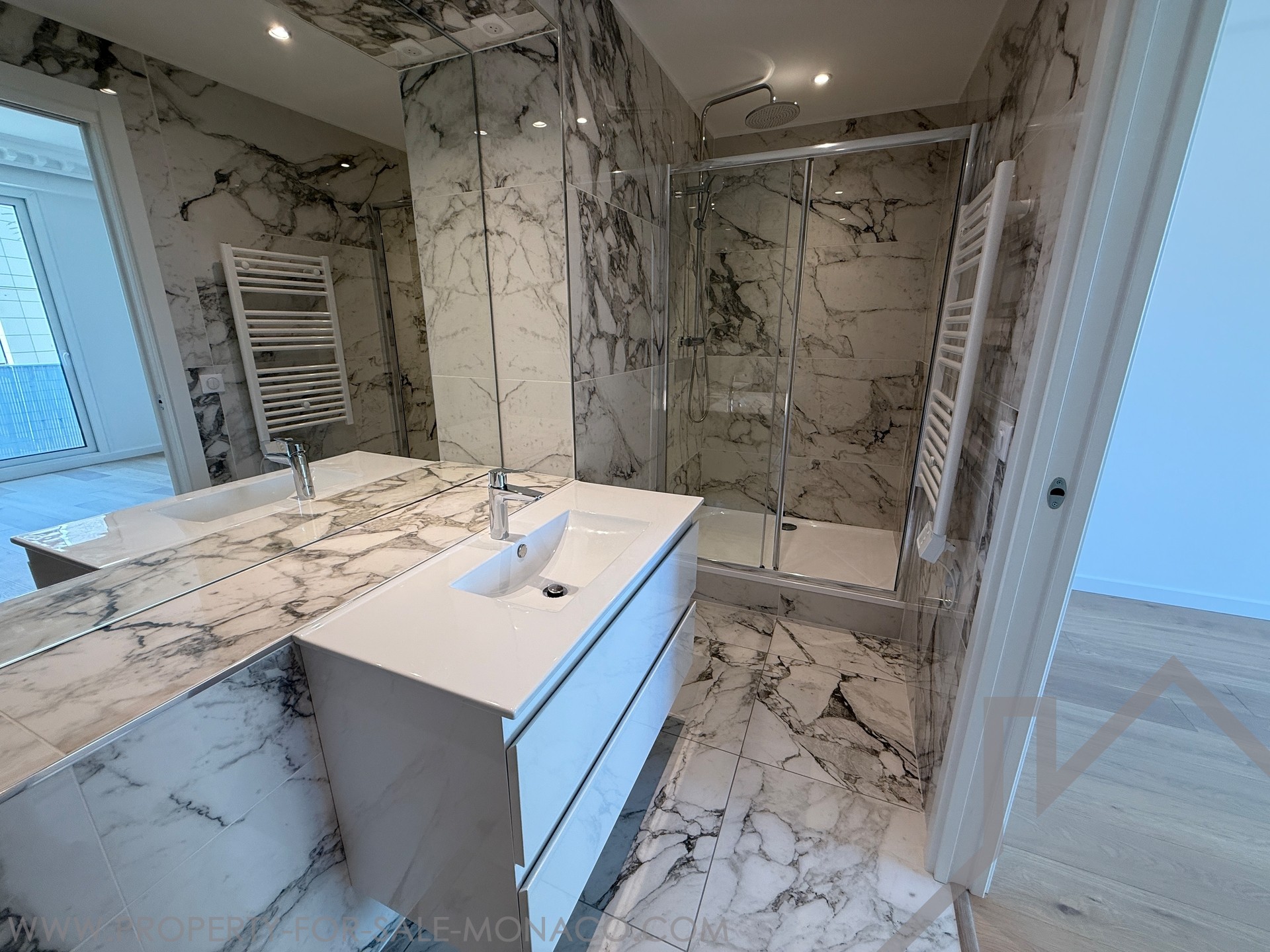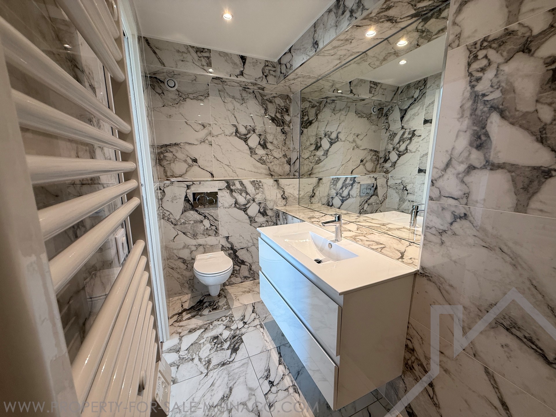 Completely renovated, this 4-room apartment is distinguished by high ceilings and a fluid distribution. The double living room with open fitted kitchen opens onto a balcony, favouring light and conviviality. Three bedrooms, each with its own en-suite bathroom, ensure comfort and privacy on a daily basis. A guest toilet completes the day area. A large terrace, easily convertible as needed, extends the living space. Two cellars provide appreciable storage. The apartment enjoys a partial view of the Rock and the sea.