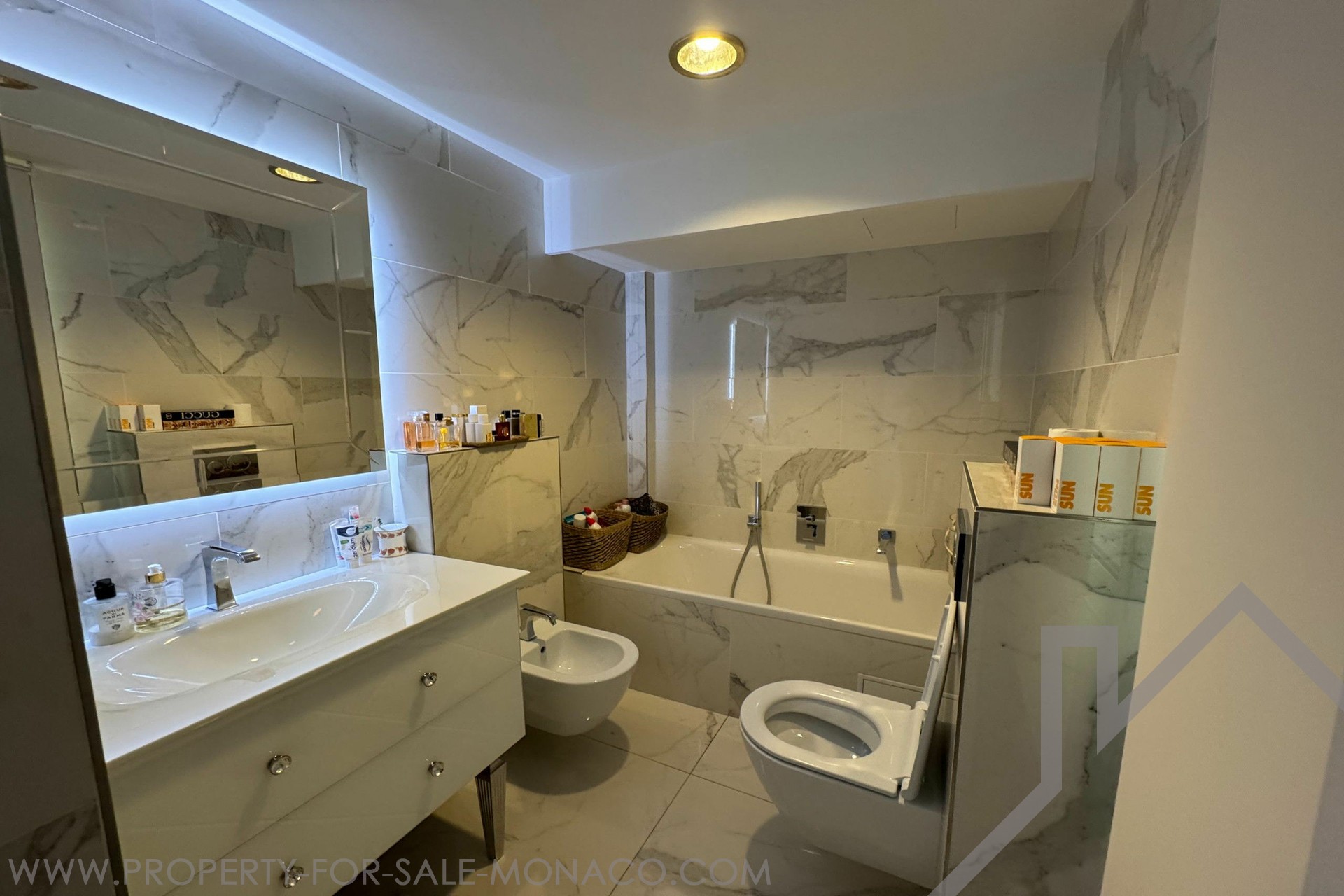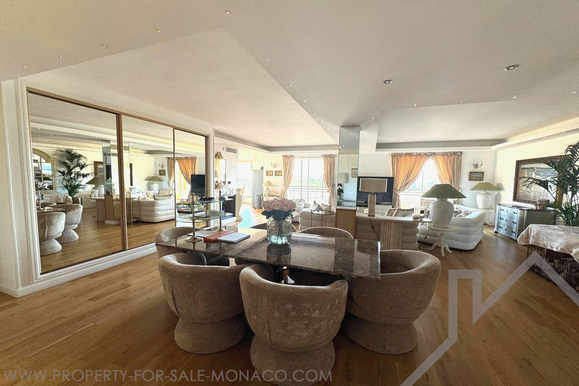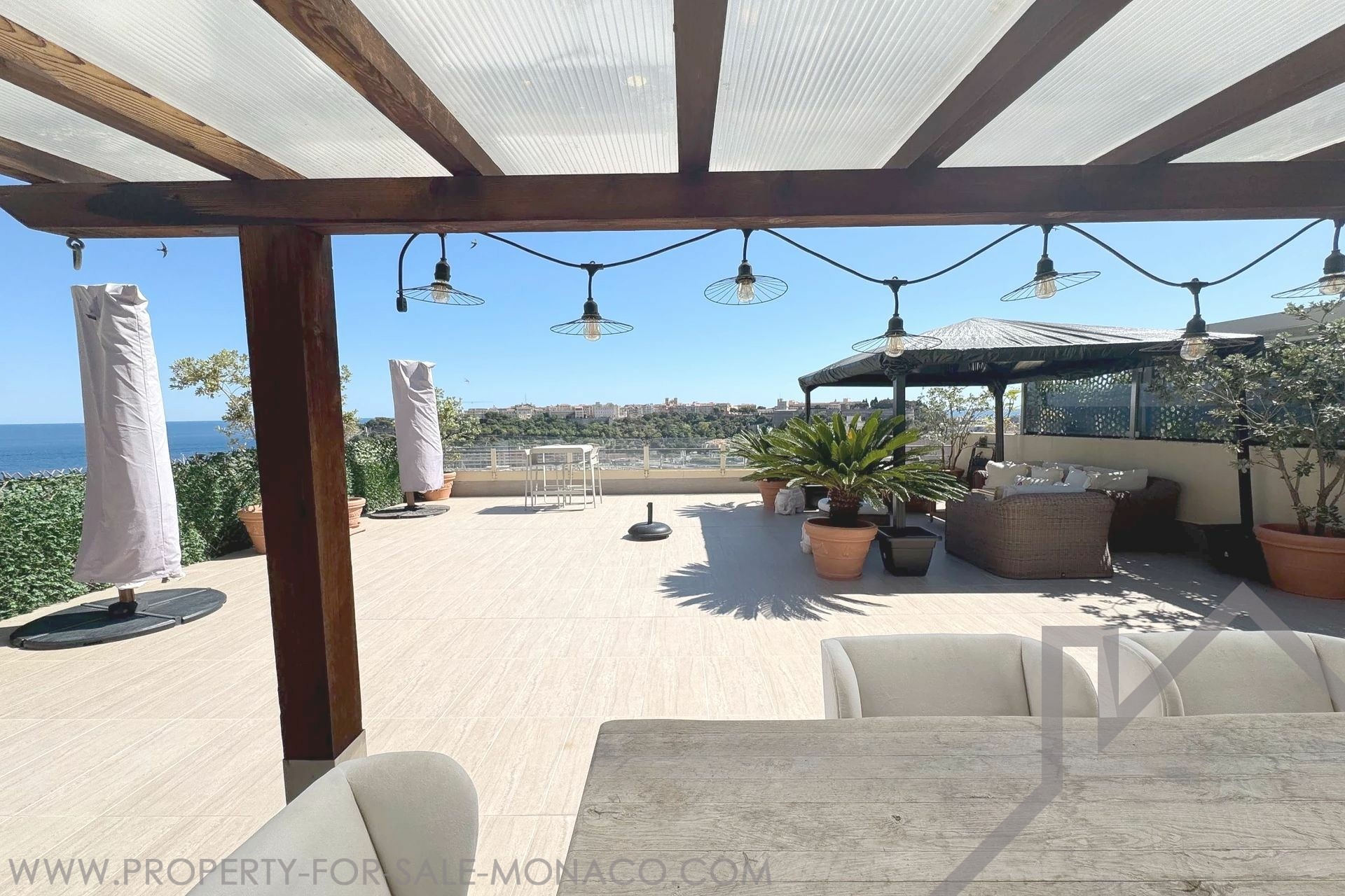Duplex with rooftop, close to the Monte Carlo Casino. This bright 5-room apartment offers a beautiful sea view overlooking Port Hercule, and its refined interiors make it a pleasant place to live. It is composed of a triple living room and a dining room facing South West, a fully equipped kitchen with dining area, sea view, 4 large double bedrooms with wardrobes and parquet flooring, 3 en-suite bathrooms: jacuzzi and showers. The private roof terrace is easily accessible. 2 cellars and 2 parking spaces complete this property.