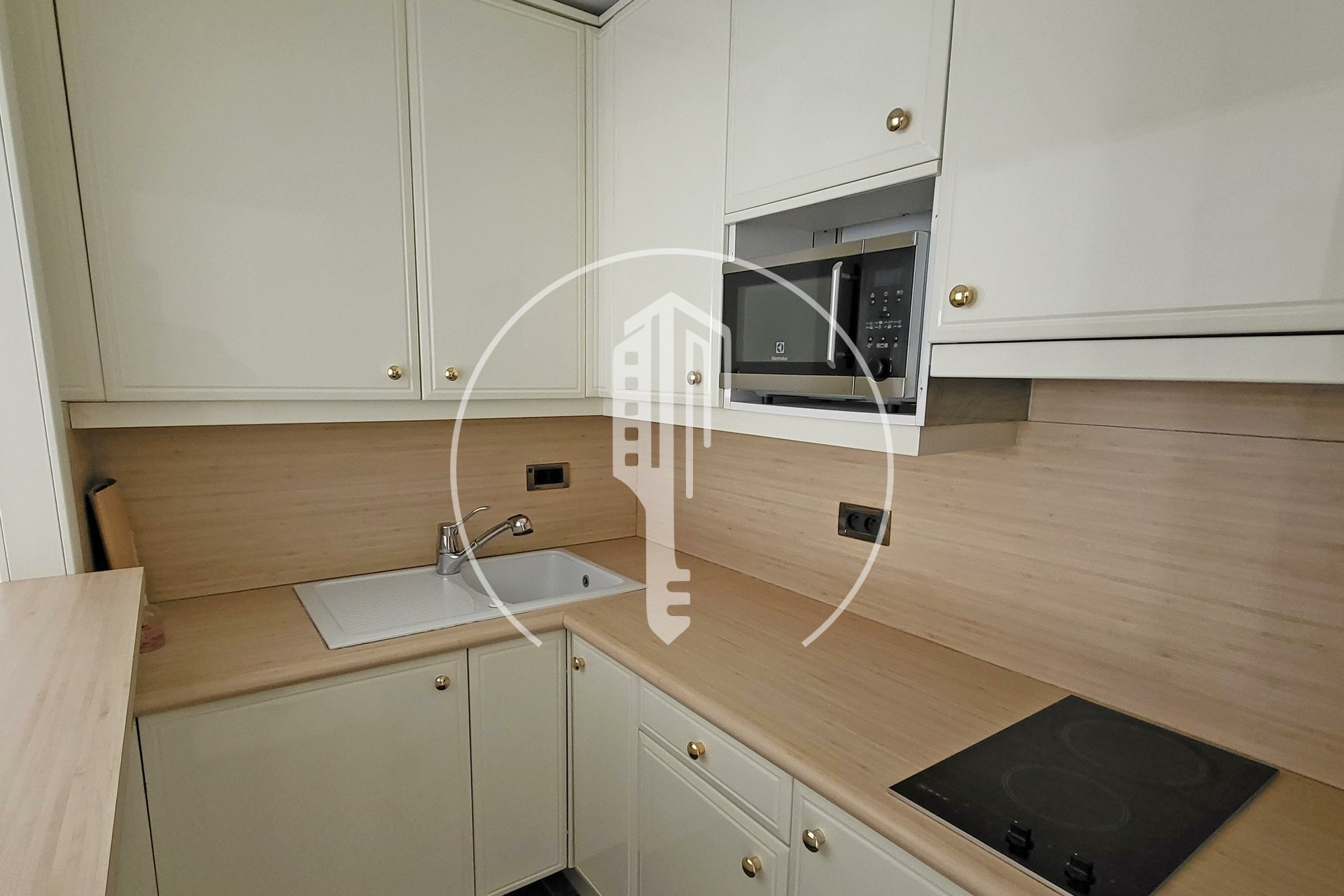 It comprises an entrance hall, a bathroom with toilet, a dressing room, a fully equipped kitchen, a main living area, and a loggia.