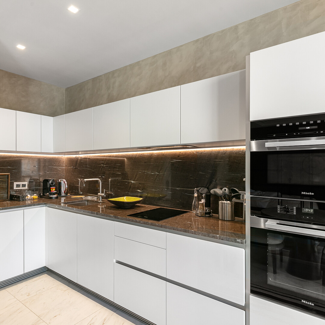 The apartment comprises a spacious entrance hall with fitted closets, a beautiful modern shower room and a main room with a large fitted corner kitchen. Air-conditioning in the apartment guarantees optimum comfort all year round.