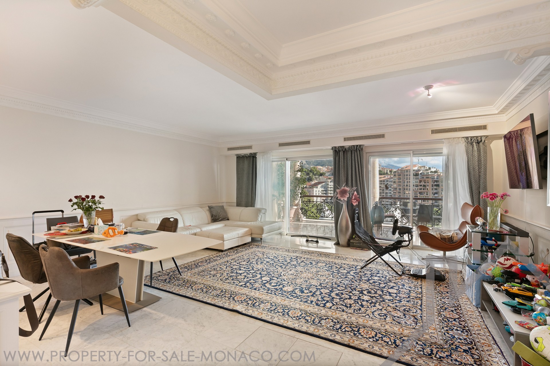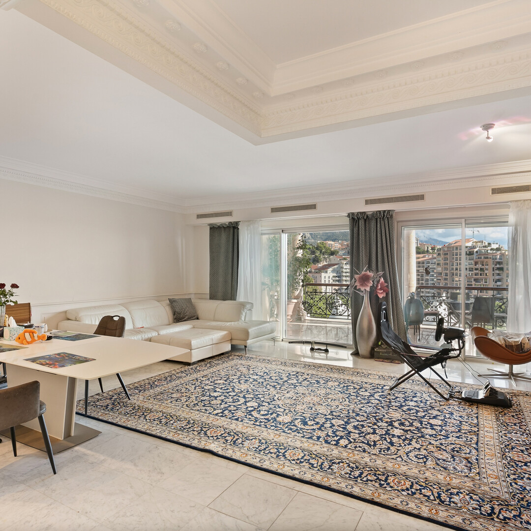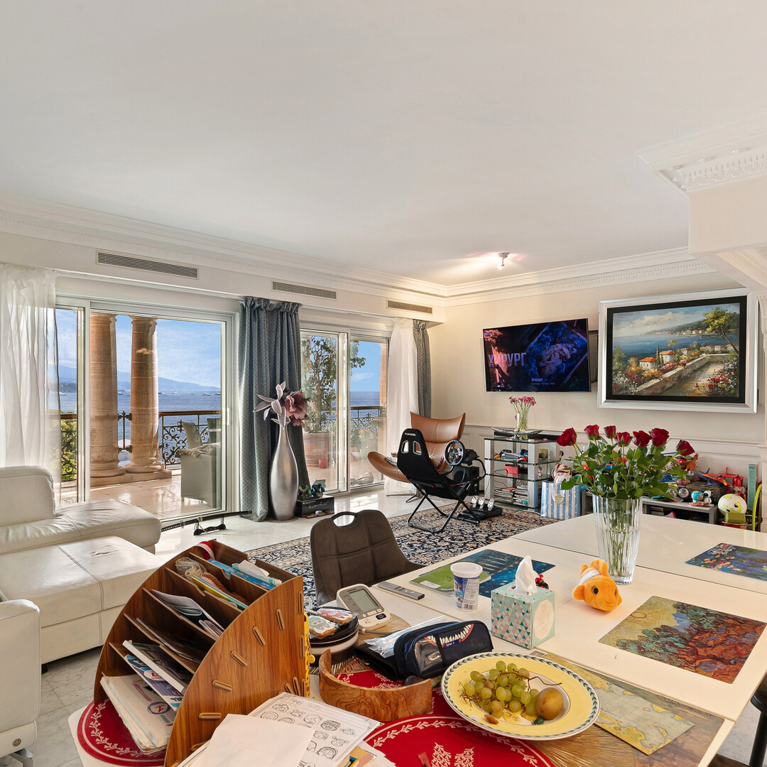 The apartment enjoys unobstructed views of the landscaped gardens, the Chapiteau de Fontvieille, and panoramic view in the Mediterranean Sea, in a privileged environment.