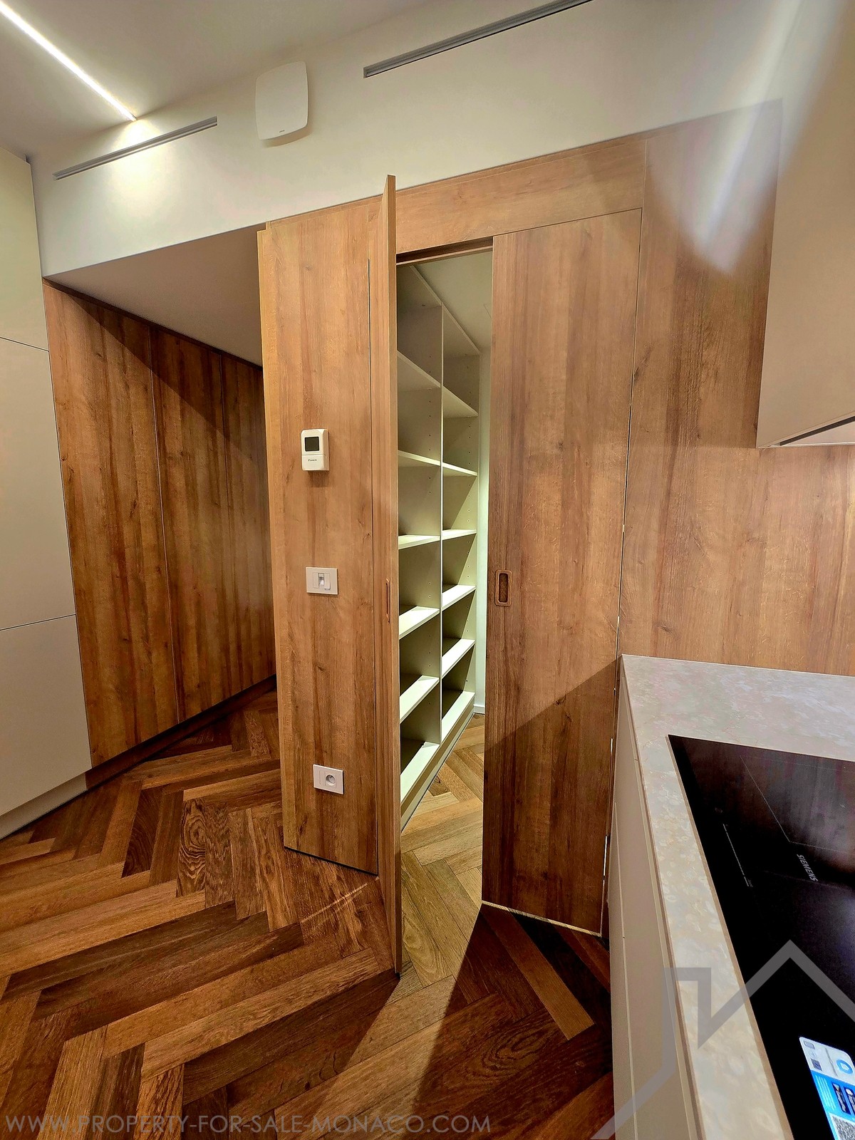 It consists of two en-suite bedrooms, including a master bedroom with fitted dressing room, a separate fully equipped kitchen, and a guest toilet. The materials are of high quality, the parquet floor brings a warm and contemporary touch, and the many storage spaces optimize the living space.