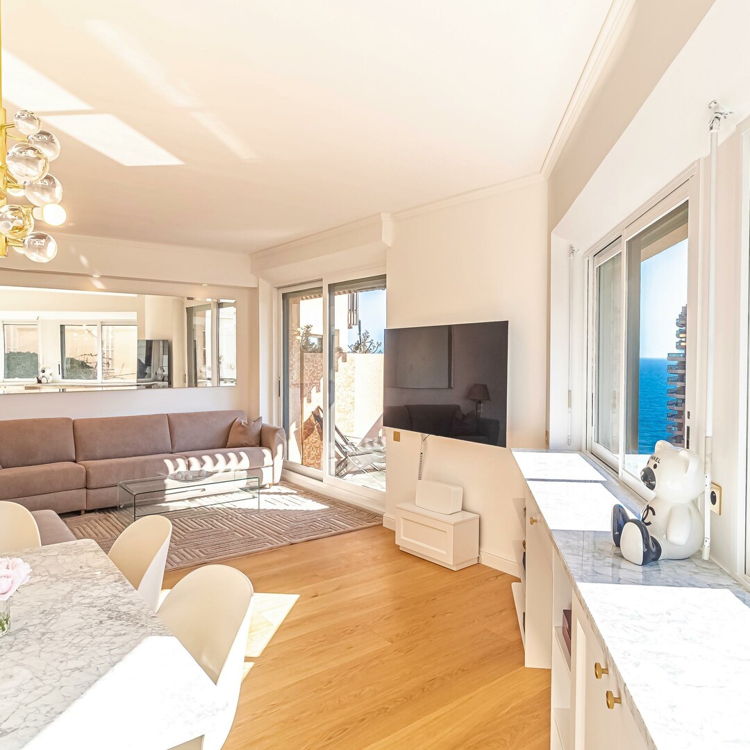 The apartment is turn-key, furnished and equipped. It has just been renovated with an excellent layout comprising: an entrance hall with a powder room and shower, a bright and airy living room that opens onto a sea-facing terrace, a fully equipped kitchen with a dining area, a bedroom suite with its spacious bathroom, a walk-in closet and its own terrace lounge.