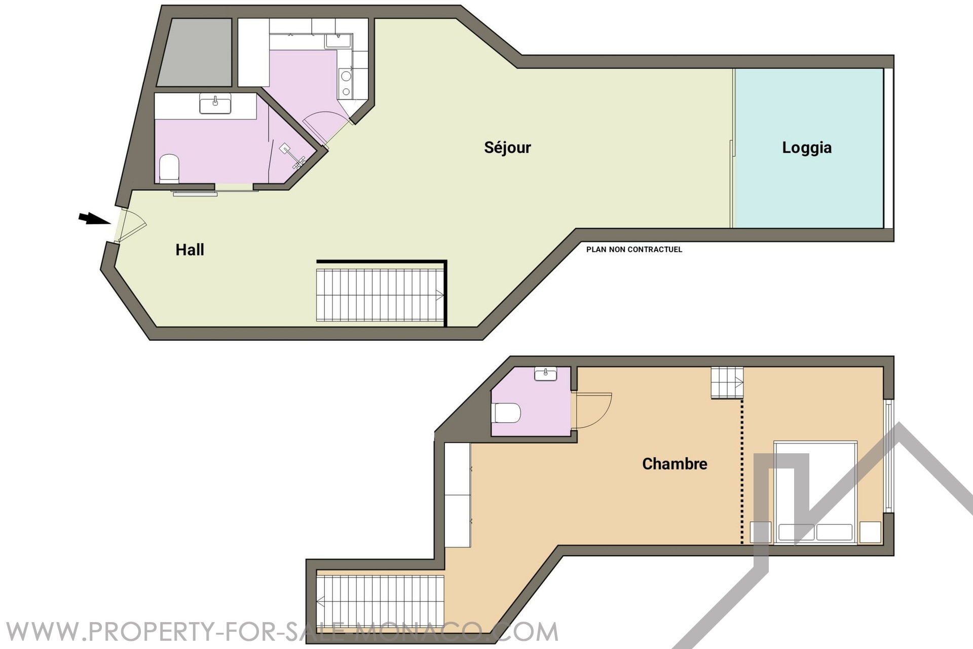 Nice and spacious duplex of 100m2, fully renovated and furnished. It comprises a large living room opening into a terrace, fitted kitchen, toilets, bedroom with wardrobe, desk area, shower room and toilets.