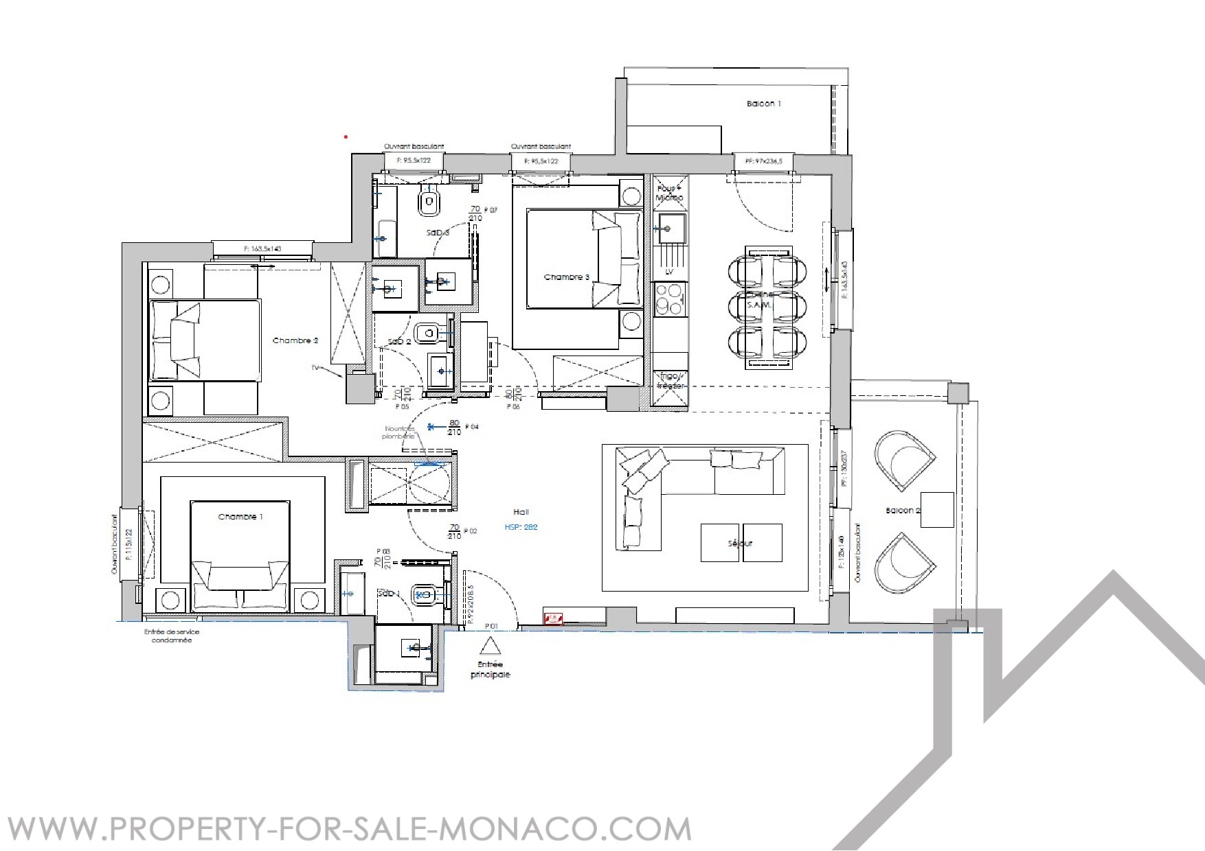 The apartment comprises an entrance hall leading to the living room, an open, fully-equipped kitchen with dining area, three bedrooms with fitted closets, each with its own shower room and toilet. This 3 bedroom apartment has two balconies.