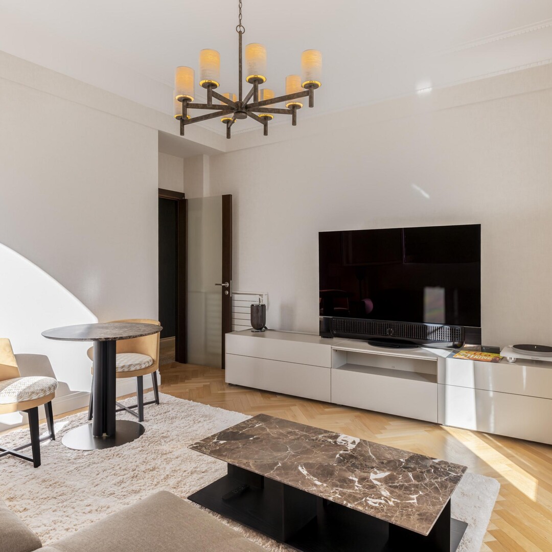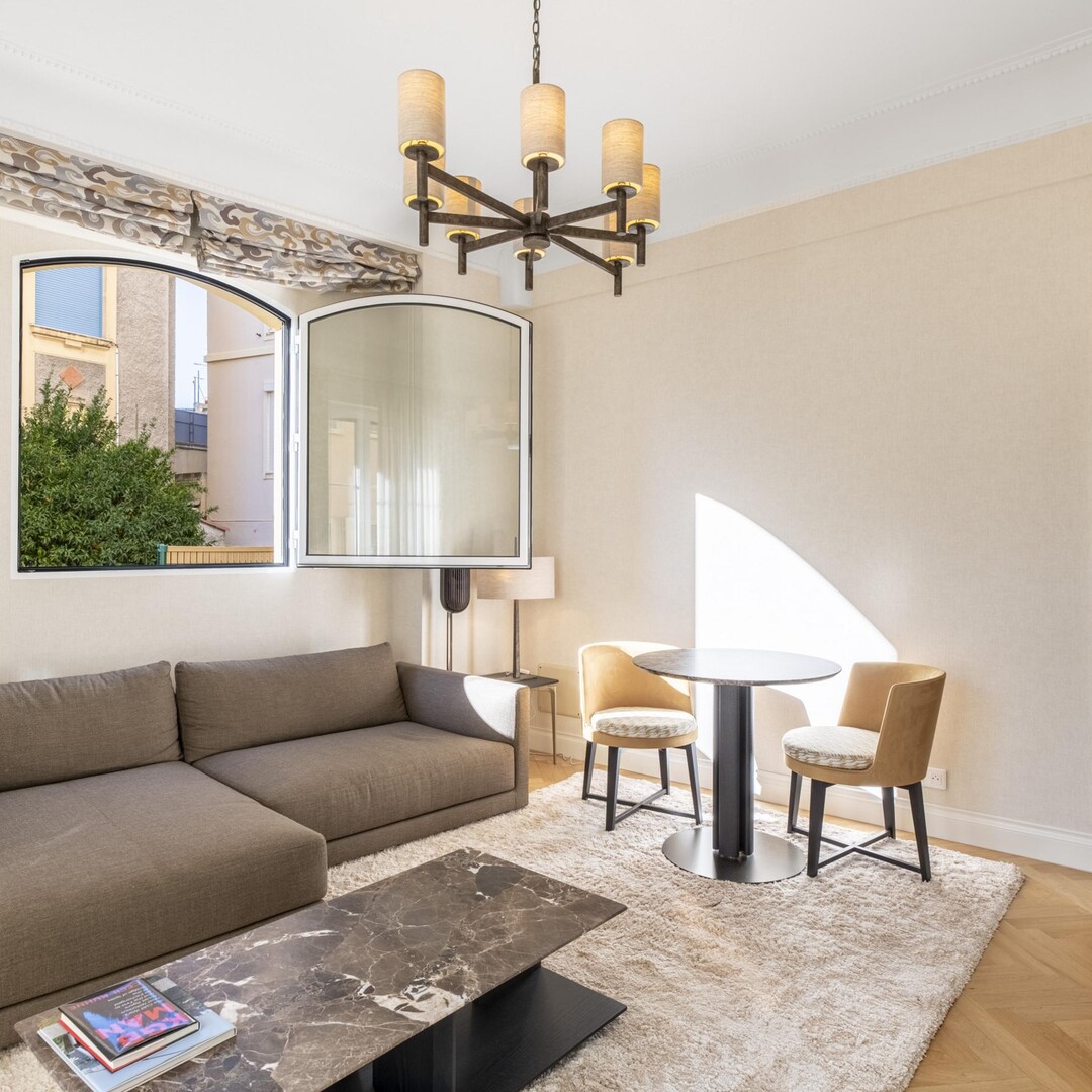 This beautifully renovated 2-bedroom apartment enjoys a central location in the heart of Boulevard des Moulins, close to all amenities, shops and restaurants. Under Law No. 887.