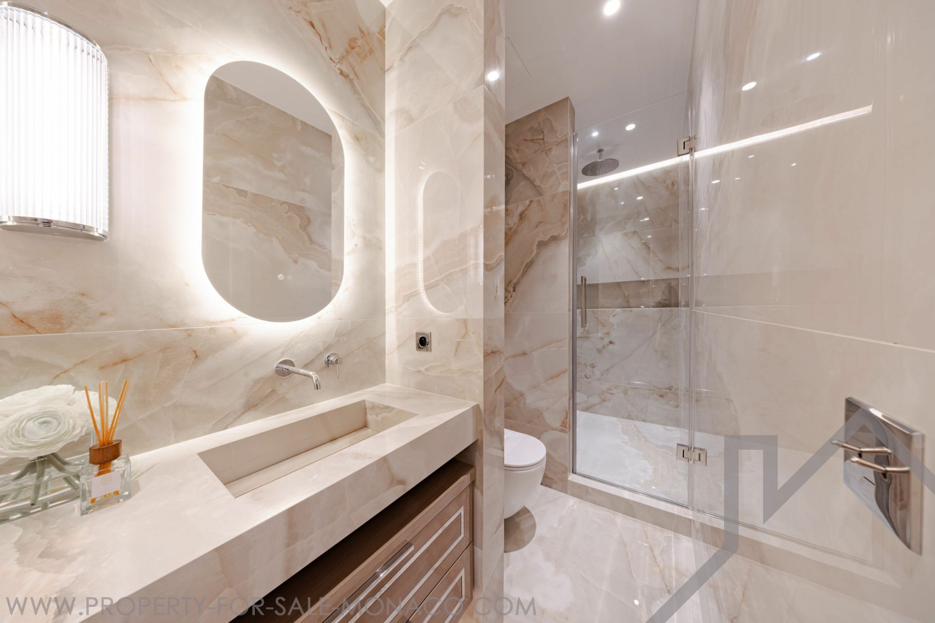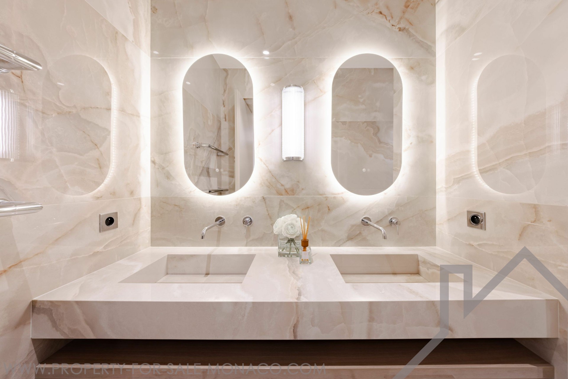 EXCLUSIVE In the heart of the Golden Square, this stunning three-room apartment has been fully renovated with high-end finishes. It consists of two bedrooms, each with its own ensuite shower room, as well as a guest toilet. Additionally, a fully equipped and fitted separate kitchen completes the apartment, along with a bright living/dining room that opens onto a balcony overlooking the Golden Square with a sea view. The apartment also includes a cellar.