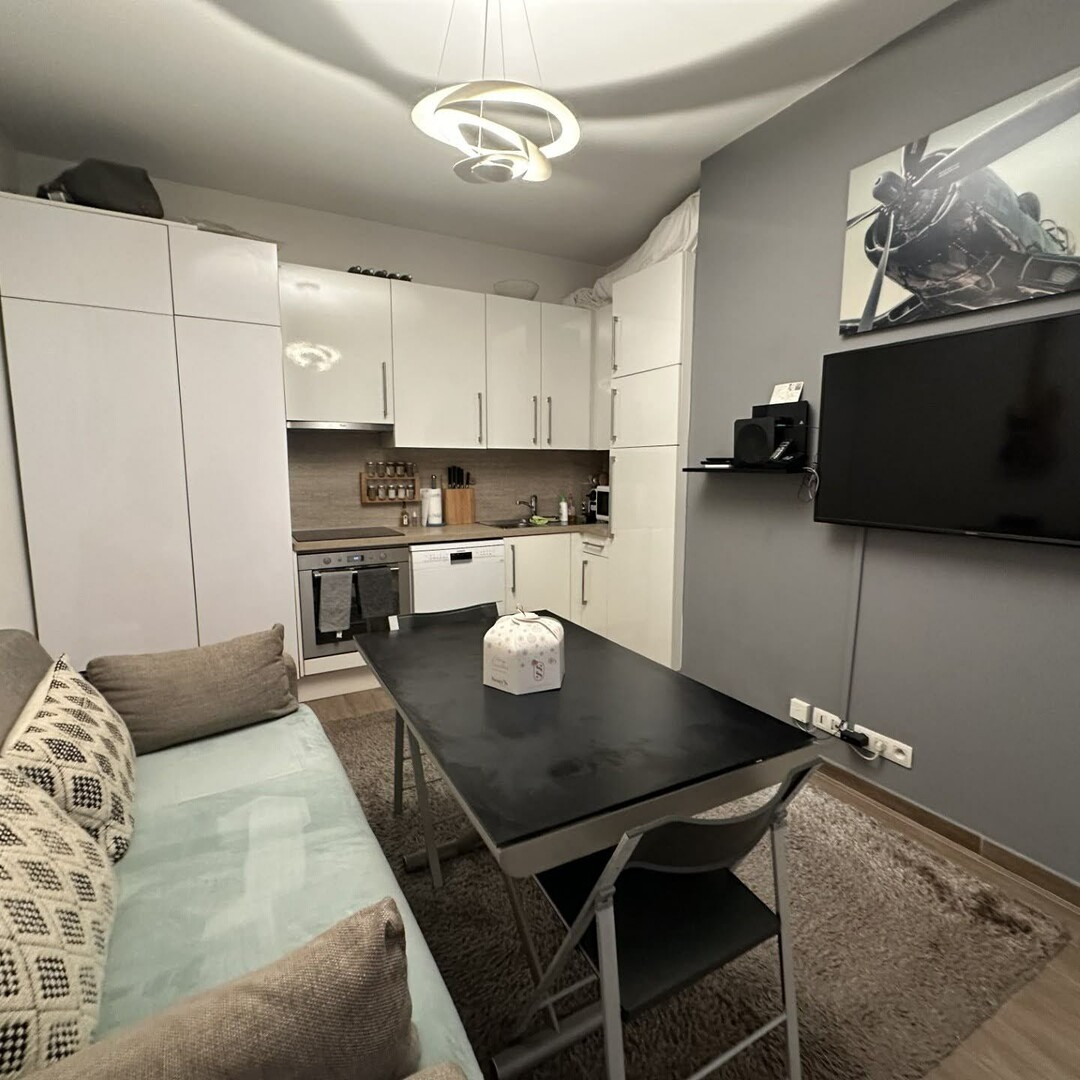 Entrance, living room with equipped kitchen, bedroom, shower room