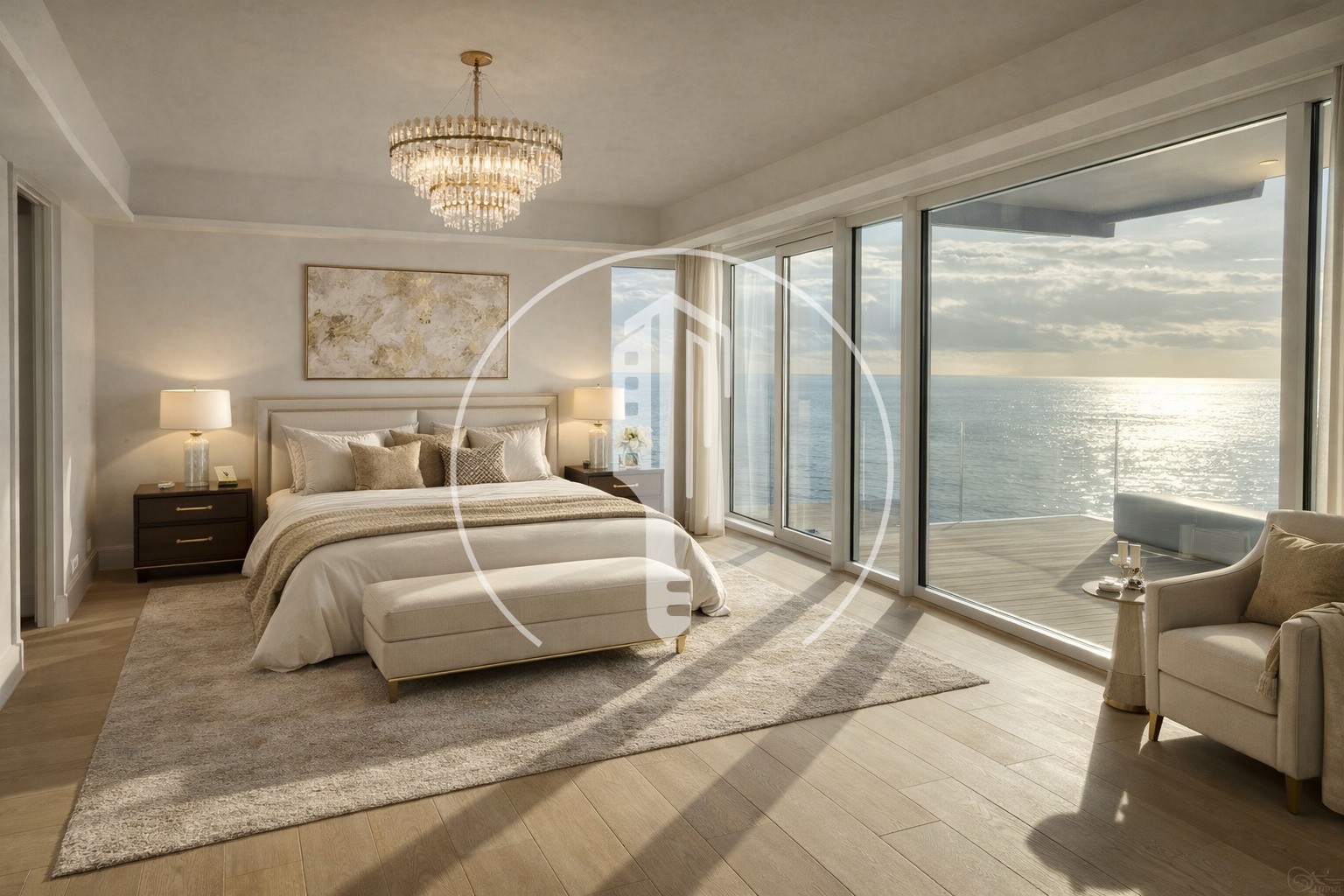 The angle apartment bathed in light, facing the sea, benefiting from the best exposure, opens onto large terraces offering a 360° view.