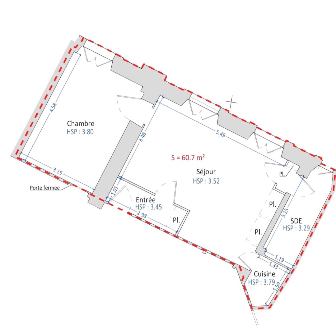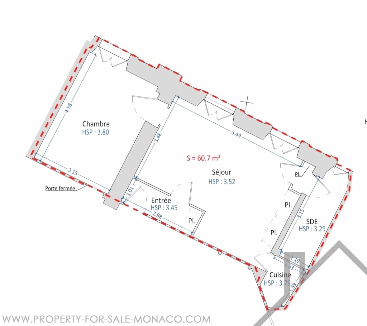 Total area : 60.7 sqm
