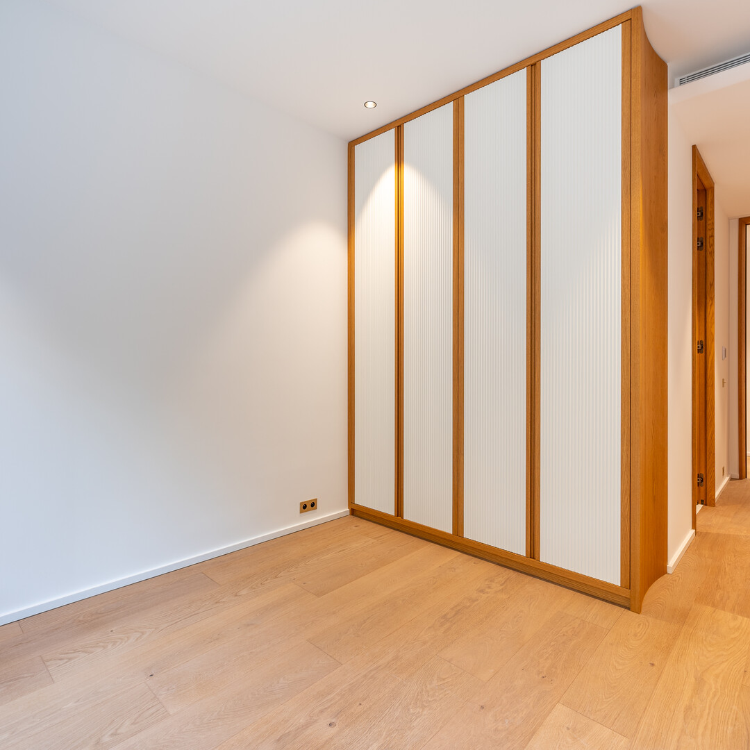 The apartment offers a large living room extended by a sea-facing terrace, a fully equipped modern kitchen, a laundry room, a guest toilet, as well as two en-suite bedrooms each with its own balcony and dressing room, also facing the sea.