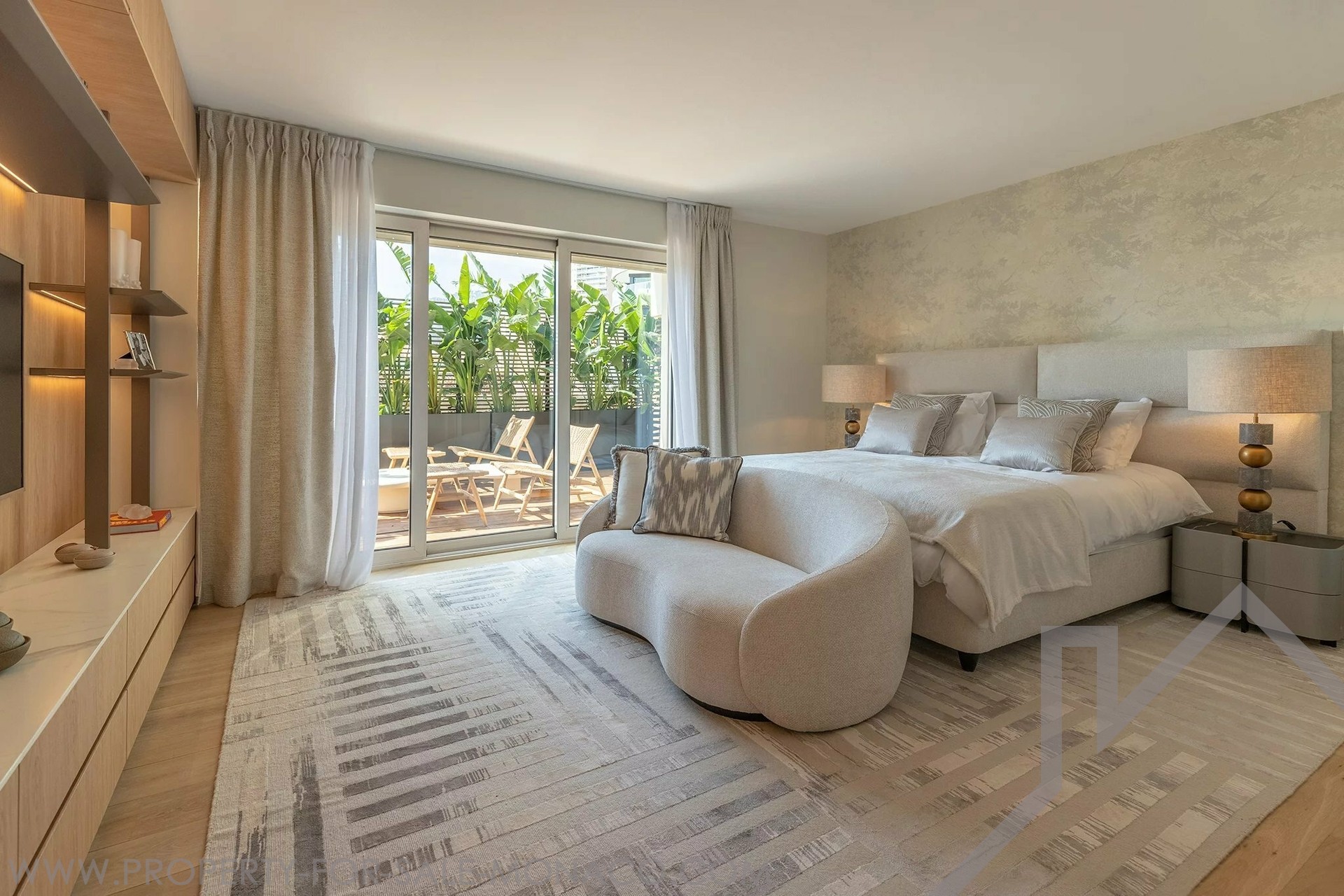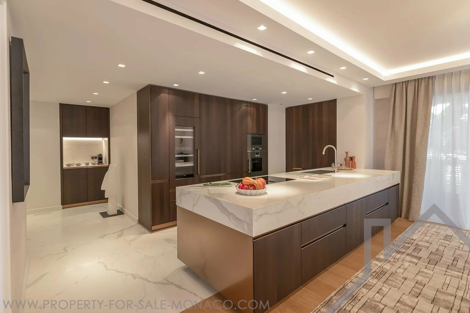 The apartment comprises: 2 separate entrance halls with checkroom, two separate sitting areas opening onto respective terraces, a large independent fitted kitchen & 8 person dining room, opening onto a large terrace, a master bedroom with ensuite bathroom & private terrace, a walk-in dressing room with ensuite bathroom (which can be converted to a bedroom), the separate sleeping area comprises 3 spacious guest bedrooms, each with ensuite bath/shower and walk-in closets.